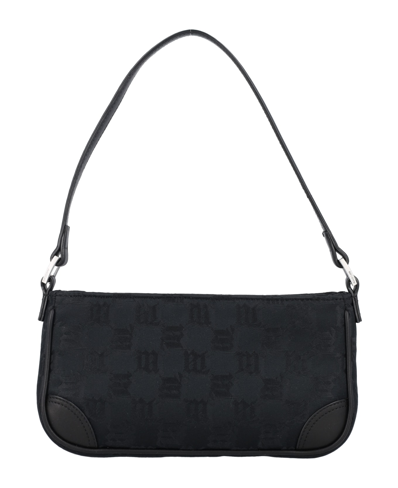 90' Jacquard Mini Bag By Misbhv. Featuring: Small Shoulder Bag Single Top Leather Handle Zipped Closure Main Compartment Jacquard Monogram Pattern Leather Details Height: 11,5cm Width: 22cm Depth: 5cm