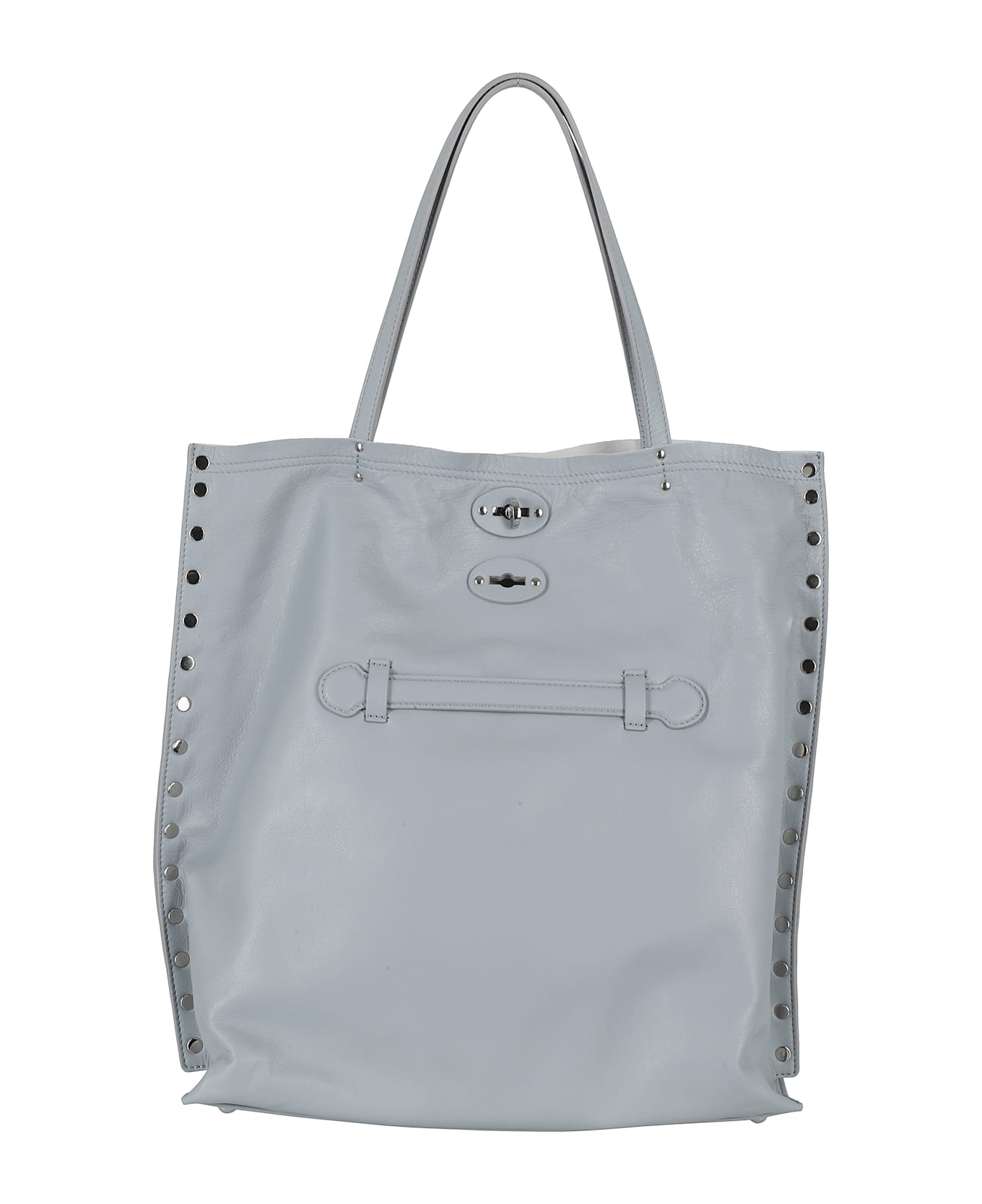 Saeta Walking Bag - Zanellato - Light blue color - Made of leather - Studded side applications - Side handle - Double top handle - Swivel closure - Size: 40 x 46 x 13 cm.