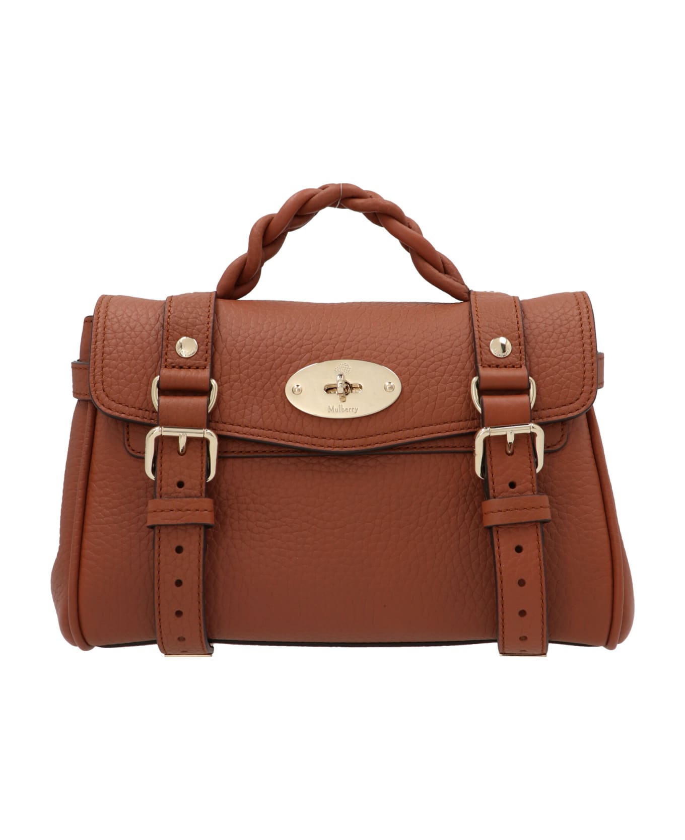 'Alexa' mini handbag in heavy grain leather with woven handle, hook closure and removable shoulder strap.