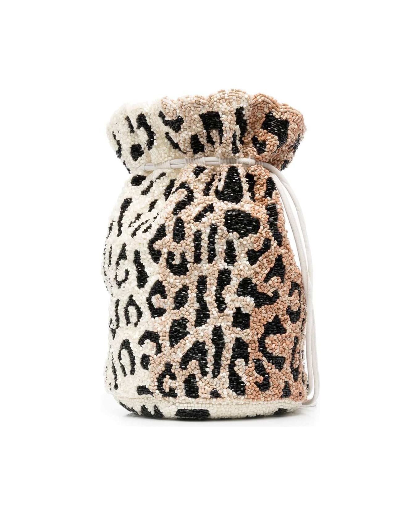 Handbag White, black and beige Gradient effect Allover applied beads Animal motif Drawstring closure Two handles Dimensions: 17x15 cm