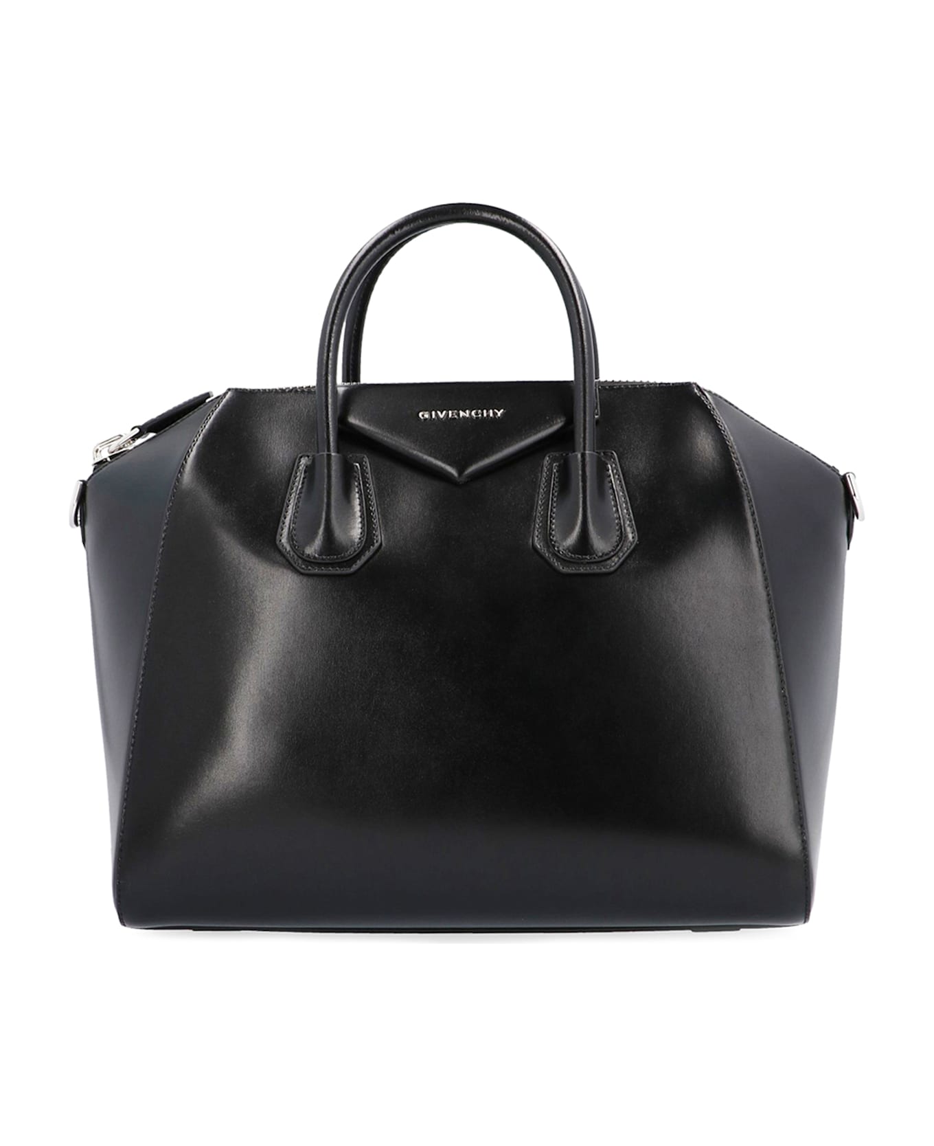 Givenchy iconic 'Antigona' small handbag in solid color 'Box' leather with silver hardware, leather handles and removable shoulder strap.