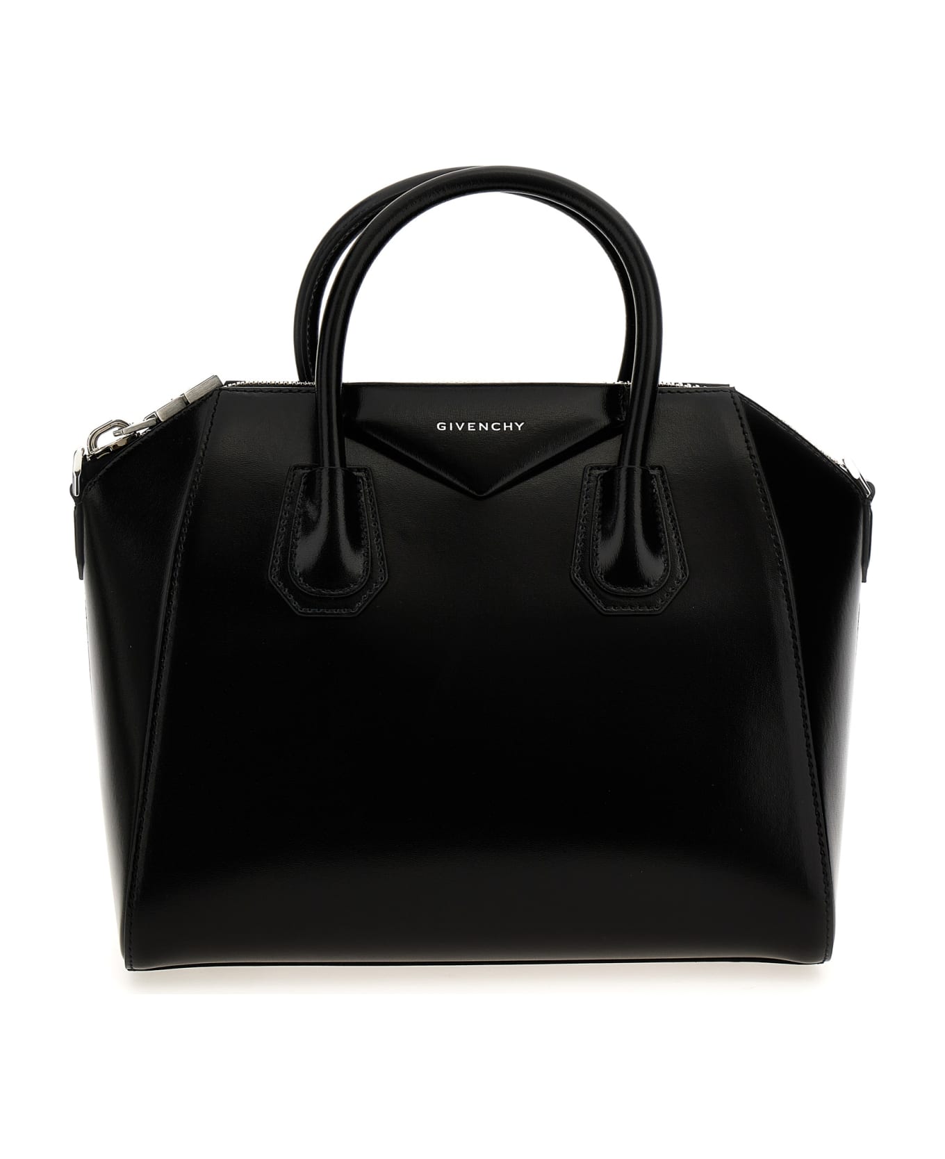 Antigona' small leather handbag with front logo, zip closure, double handle, and awith adjustable and removable shoulder strap.