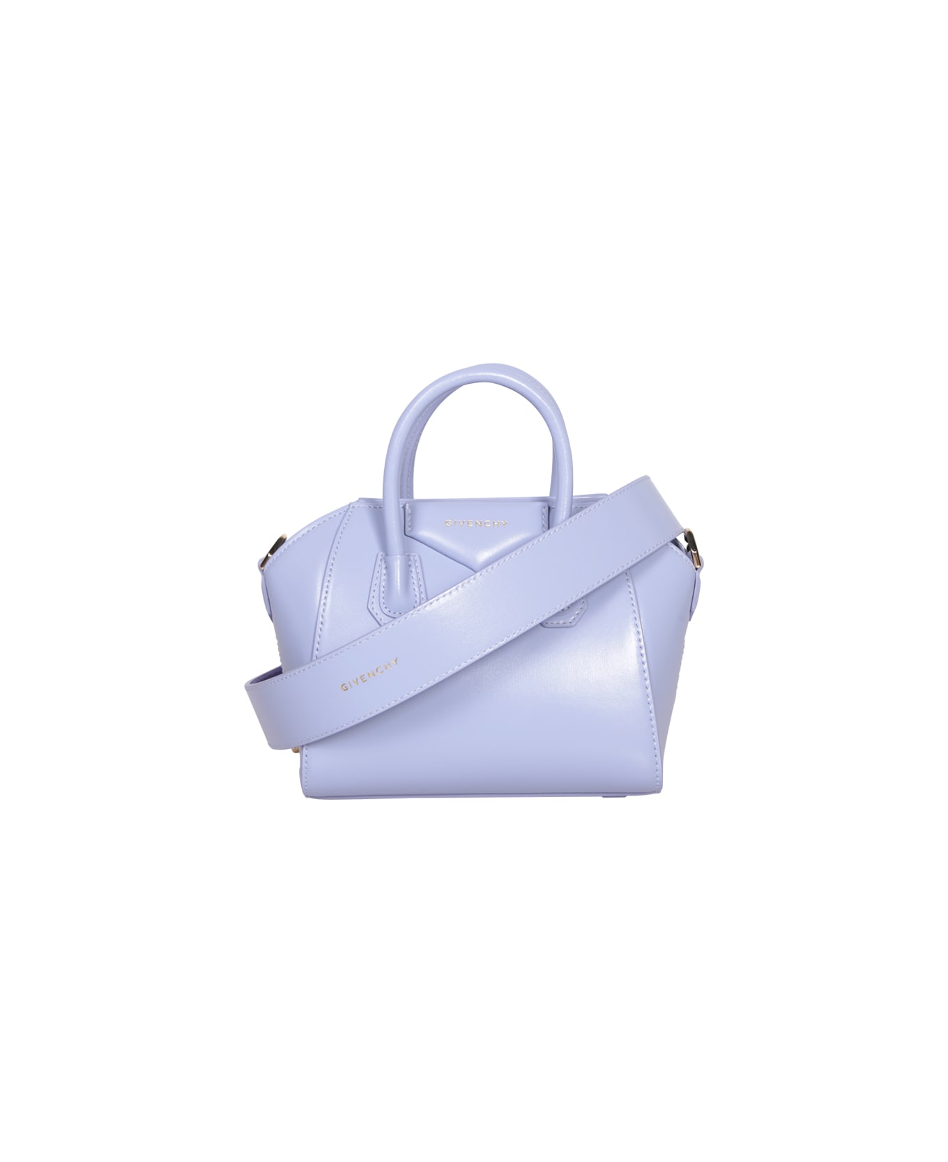 Two top handle. Top magnetic fastening. Main compartment. Internal slip pocket. Frontal logo. Detachable shoulder strap. Bi-color shoulder strap. Contrasting lining. Gold-tone hardware. Color: lilac/ purple