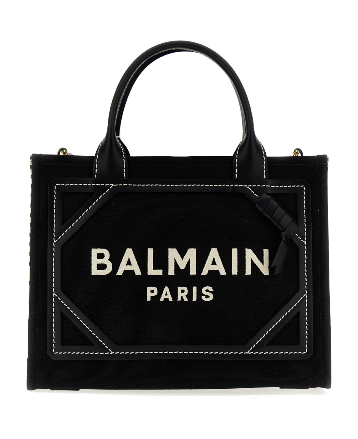 B-Army' canvas shopping bag with leather details, leather handles, with adjustable shoulder strap, logo embroidery and a snap hook closure with sweater. Composition: 100% Cotton