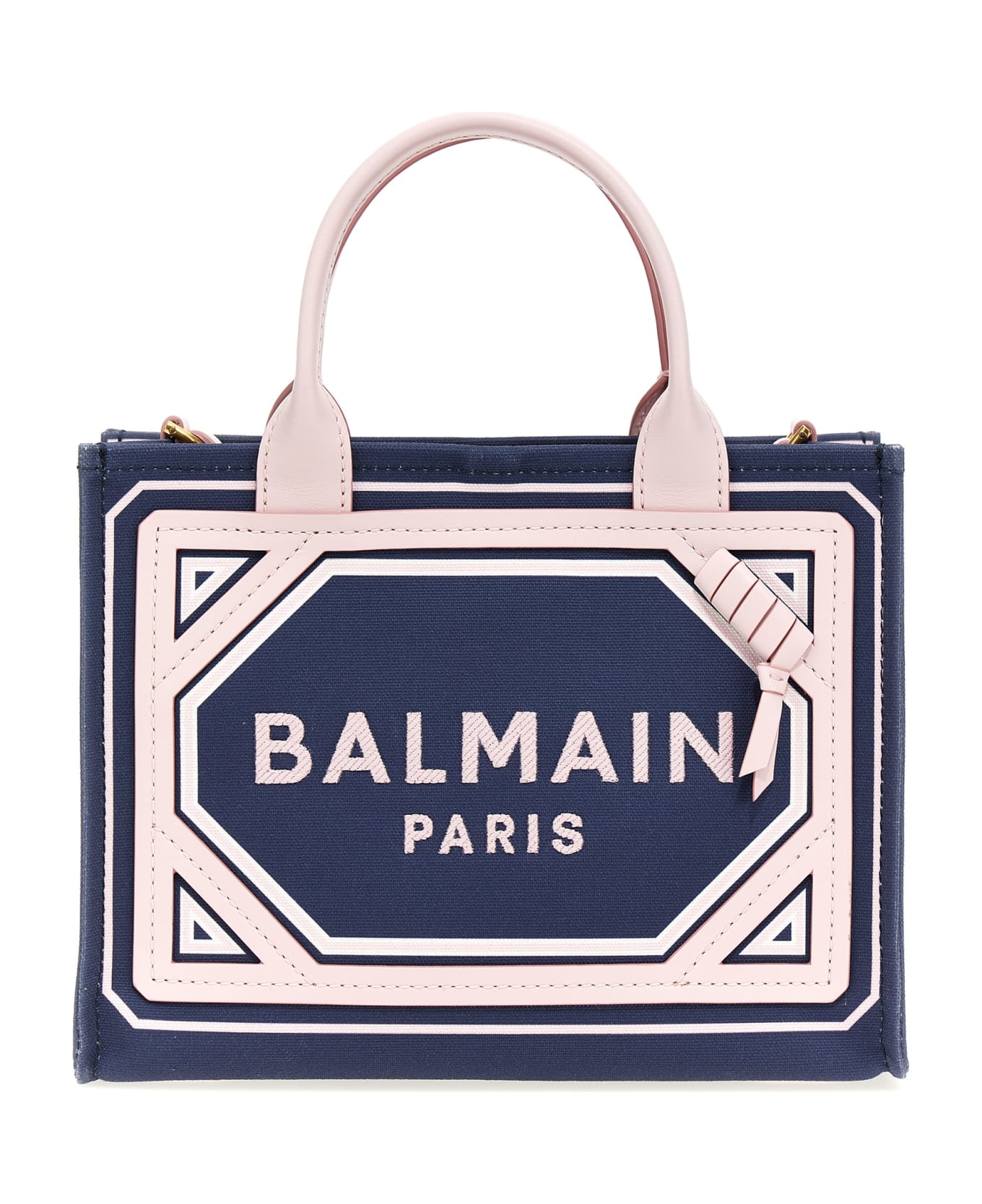 'B-Army' canvas shopping bag with leather details, leather handles and adjustable shoulder strap, logo embroidery, snap hook closure with engraved logo.