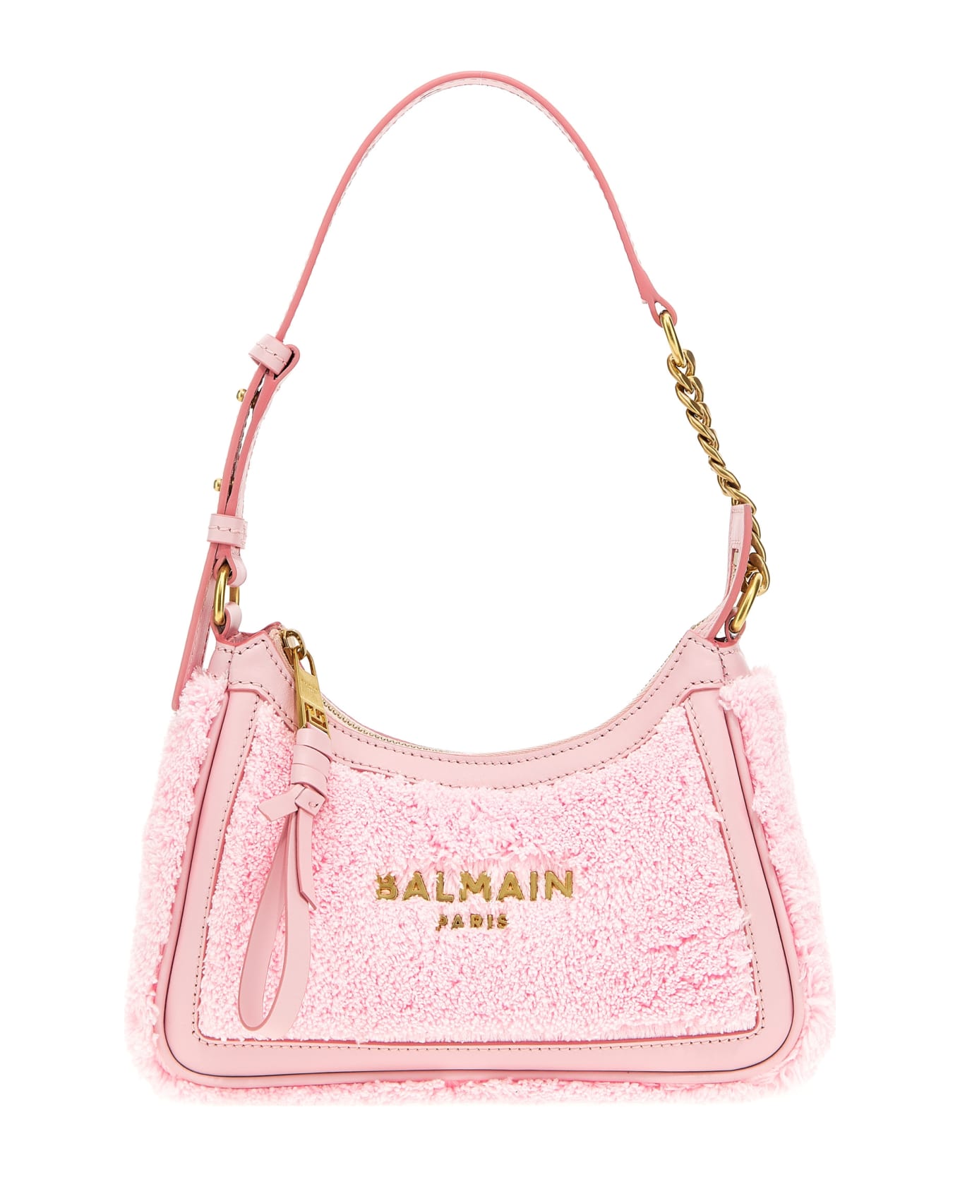 B-army' cotton terry cloth shoulder bag with front metal logo, a zip closure. Adjustable leather and chain shoulder strap. Composition: