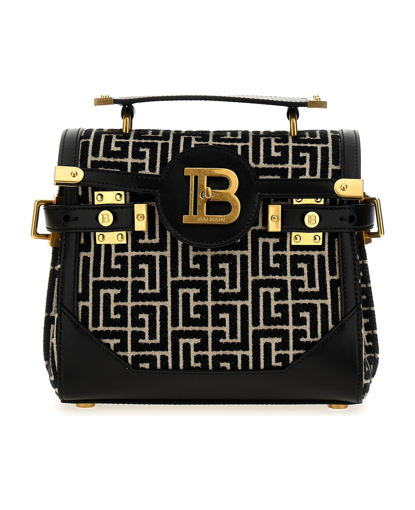 B-Buzz 23' handbag in monogram fabric and leather with front B logo turn-over closure, top handle and a removable shoulder strap. Composition: