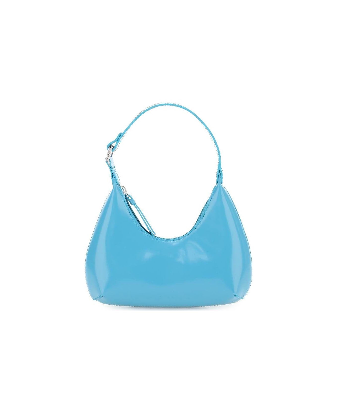 By Far Baby Amber mini bag in brushed leather.  Rigid handle with silver finish buckle with engraved logo. Zippered closure. Fabric interior with contrasting leather logo patch.
