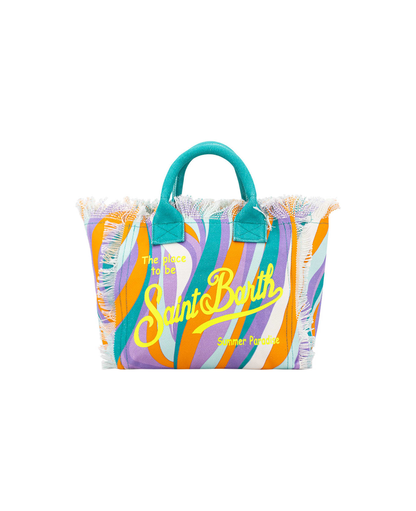 Hand bag with fringes, printed St. Barth logo, zip closure, inside zip pocket. Dimensions: 26x14x23 cm. Composition: 100% CO