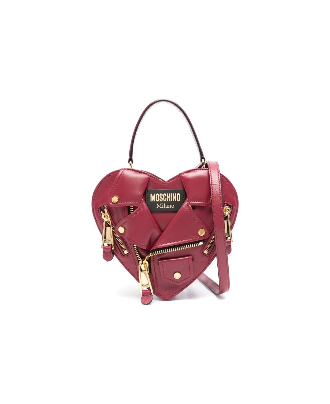 bordeaux red calf leather biker jacket design heart shaped logo patch to the front gold-tone stud detailing decorative zip detailing matelassé detailing top zip fastening single flat top handle adjustable detachable shoulder strap panel detail to the rear full lining internal logo stamp internal card slot main compartment logo-engraved gold-tone hardware