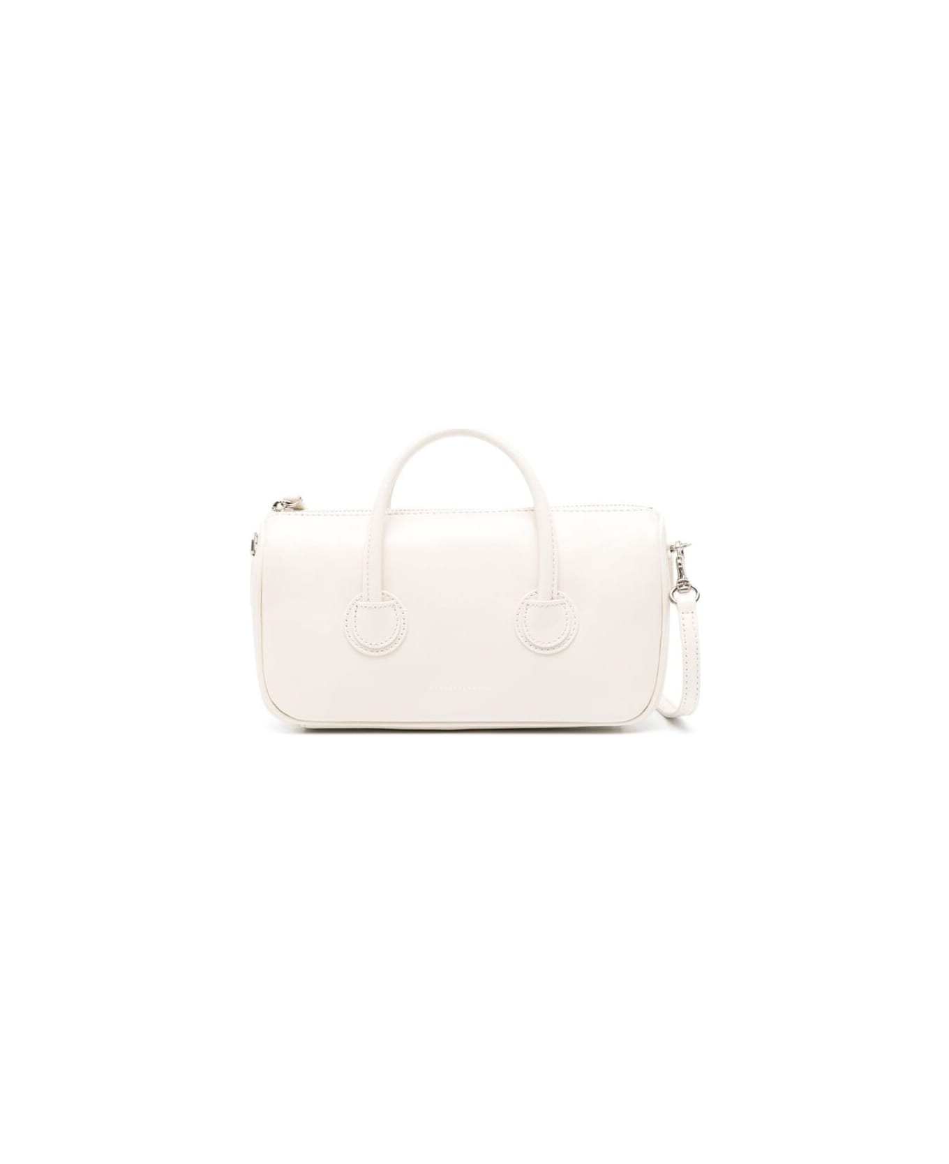 cream white calf leather smooth grain glossy finish leather piping detail detachable shoulder strap two rolled top handles logo stamp to the front main compartment internal logo patch logo-jacquard lining silver-tone hardware top zip fastening This piece comes complete with a protective dust bag.