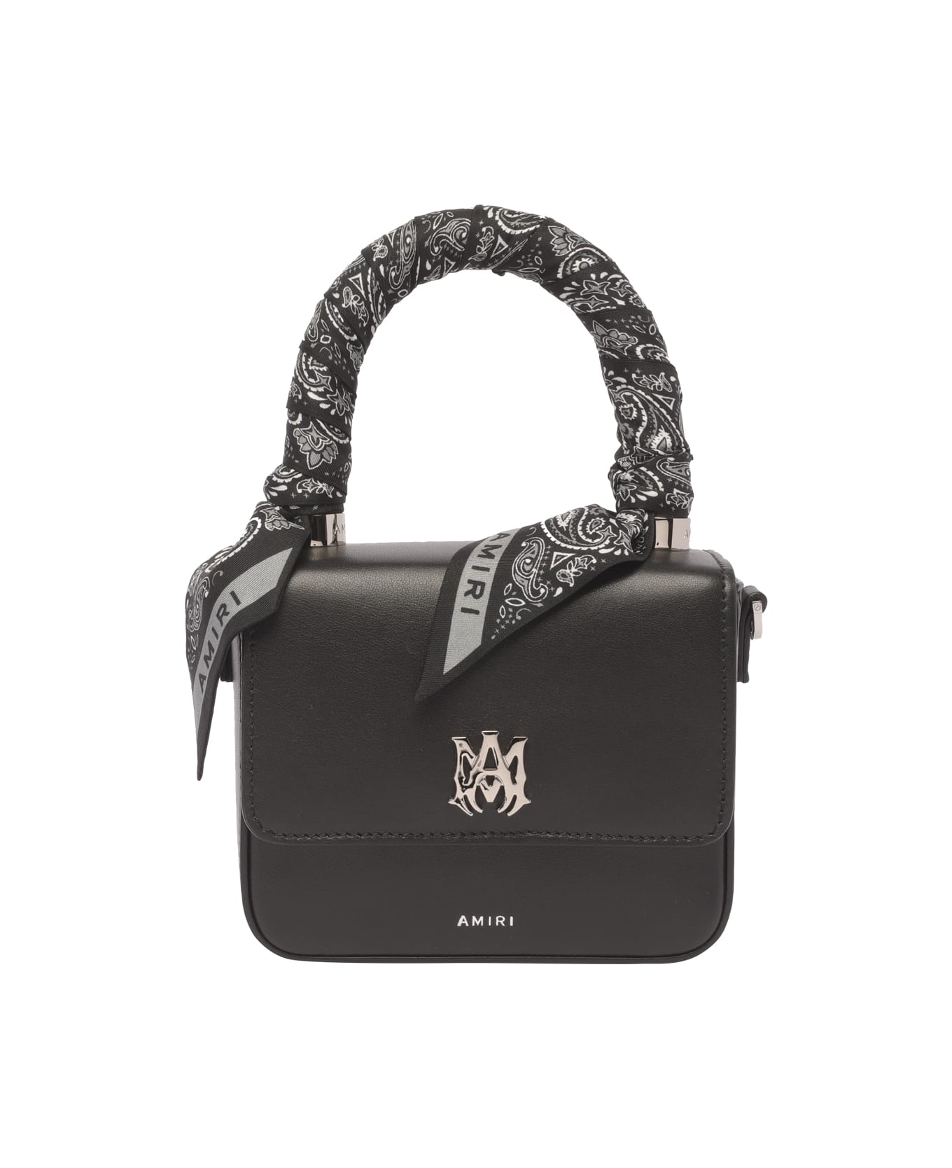 Amiri black M. A. hand bag, micro model, magnetic closure, inner zip pocket and one pocket, one handle, adjustable and removable shoulder strap