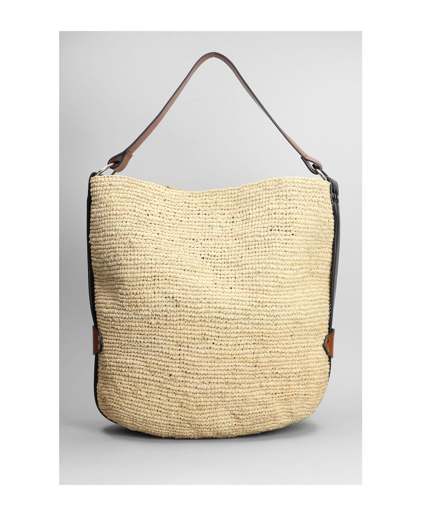 Baya Tote in beige Silver, Height 355 mm, Width 390 mm, Height 355 mm, shoulder strap, leather detail, rafia fabric