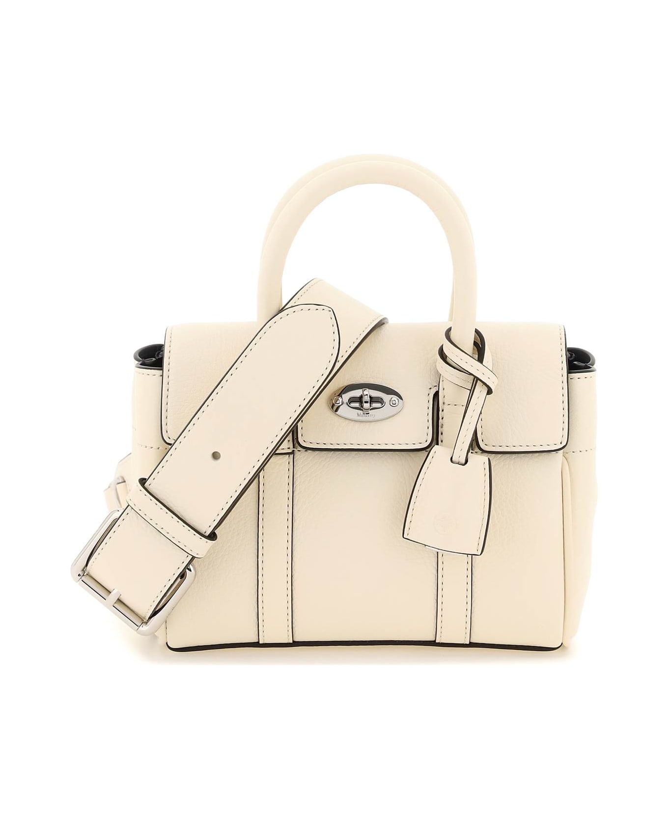 Bayswater Mini bag by Mulberry crafted in grained leather featuring flap with the iconic Postman's Lock closure with engraved logo. Removable padlock charm with leather case, double top handle and adjustable and detachable shoulder strap. Smooth leather interior with three credit card slots. Silver-finished metalware.