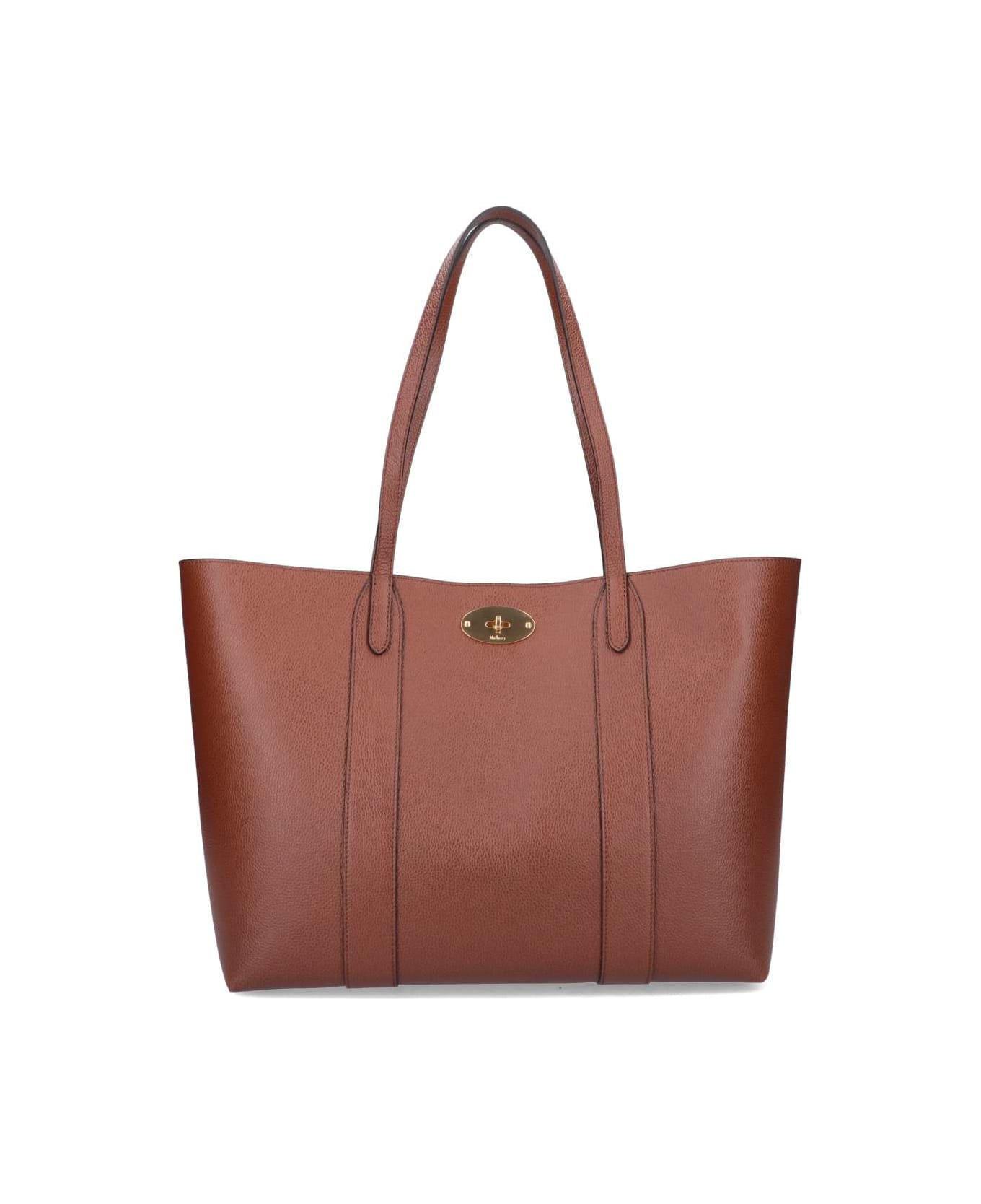 Mulberry 'Bayswater' leather tote bag with two top handles, a gold color spin closure and a lettering logo detail, a main inner compartment, and a removable leather inner pouch.