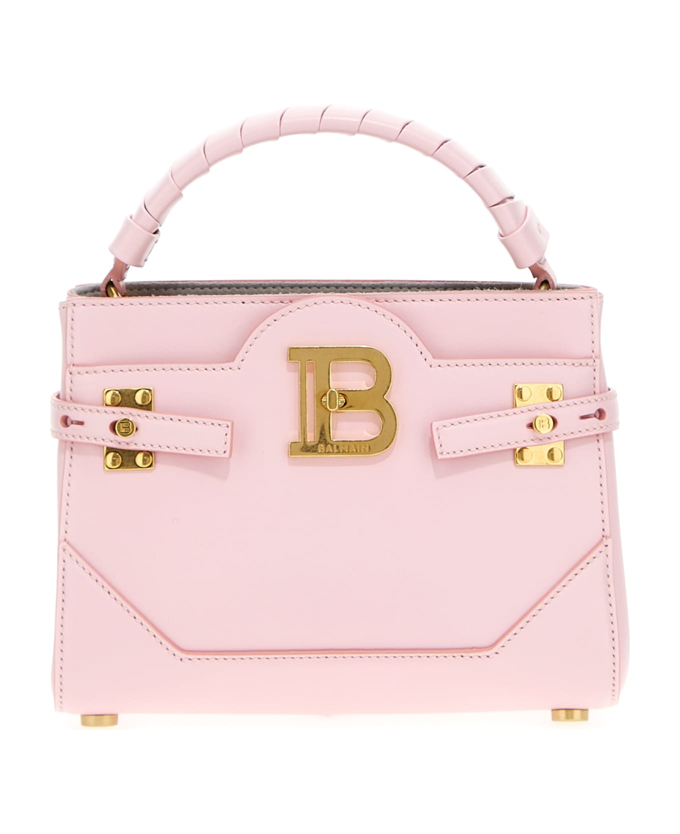 BBuzz 22 handbag in leather with gold hardware and metal logo on the front, hook closure, and fixed handle. Removable shoulder strap