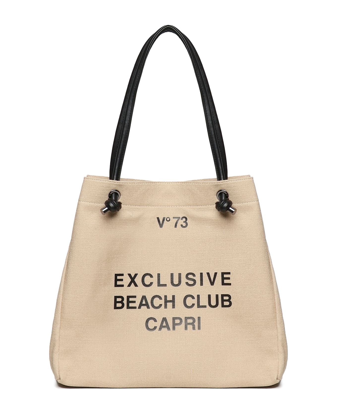 -Canvas shopping bag -Black tubular handles -Front print -Measurements: 54 x 35 x 20. 5 cm -Color: Beige