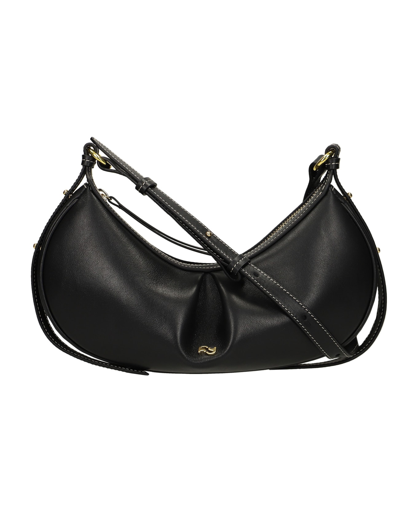 Bean Shoulder bag in black leather, shoulder strap, zip clousure, gold hardware, 100% leather, Made in Spain, Height 110 mm, Width 260 mm