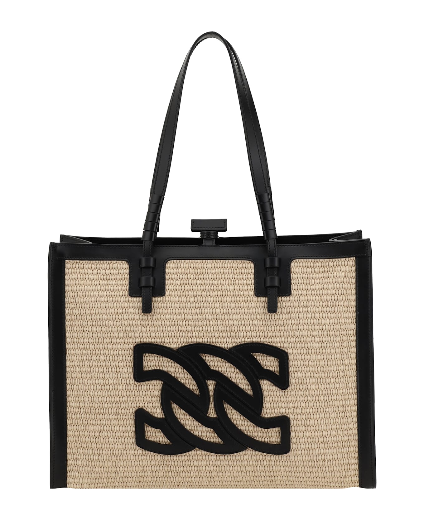 Casadei's raffia beaurivage tote bag is an elegant and sophisticated accessory perfect for summer. the two flat leather top handles add a touch of sophistication and comfort. the frog closure at the top ensures security and practicality, while the contrasting c-chain logo on the front gives a distinctive and recognizable detail. the interior is unique and spacious, ideal for storing all your belongings neatly. Composition: 90% % Raffia, 10% % Calf Leather Bos Taurus