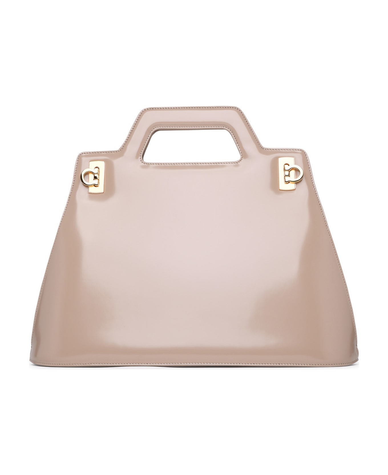 Gancini buckle side opening, an adjustable and removable shoulder strap, flat pocket with two inner compartments \n35 x 29 x 10 cm Composition: 100% Calf leather