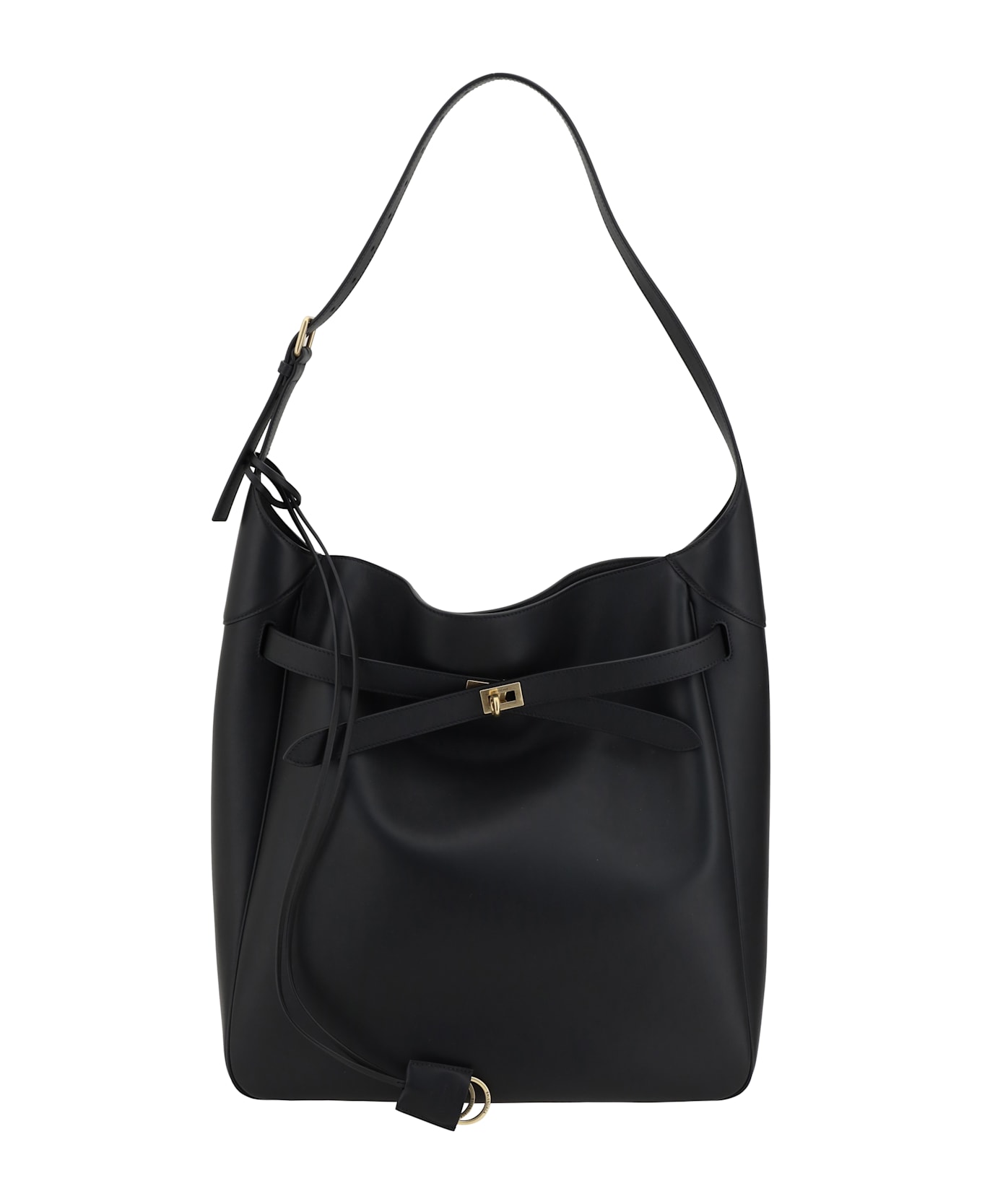 Balenciaga's bel air large leather shoulder bag features a stylish and functional design. equipped with an adjustable shoulder strap, it offers perfect versatility to suit a variety of occasions. the front swivel closure provides convenience and security, while the removable leather key ring with two open rings adds a distinctive detail. feet at the base of the bag protect the leather, maintaining shape and integrity over time. the interior, with a single compartment, offers enough space for everyday essentials while maintaining a clean, sophisticated look.
