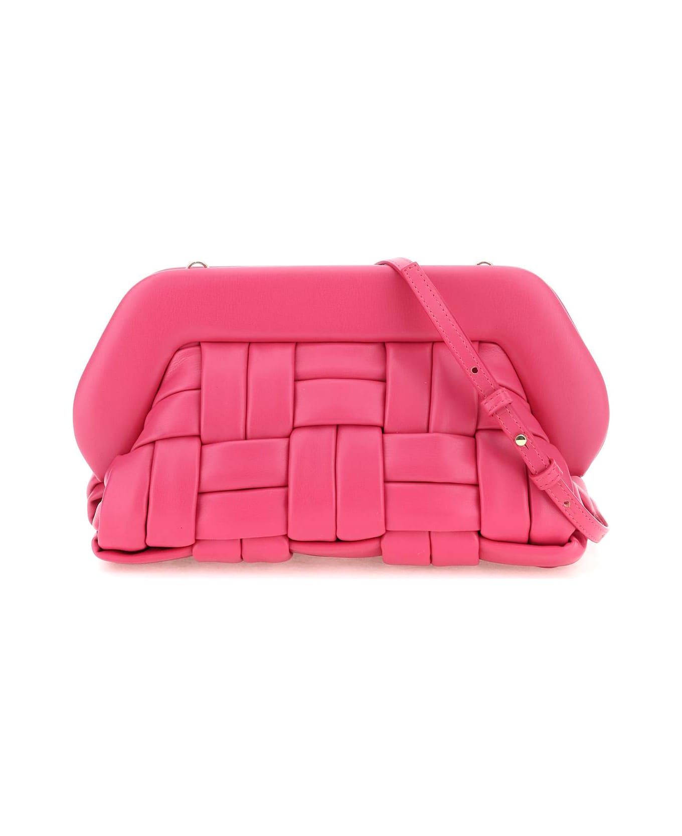 THEMOIRè Bios handbag made of sustainable vegan nappa leather making a weaved motif. Covered zipper frame and double magnetic closure, fabric interior and adjustable, detachable shoulder strap.