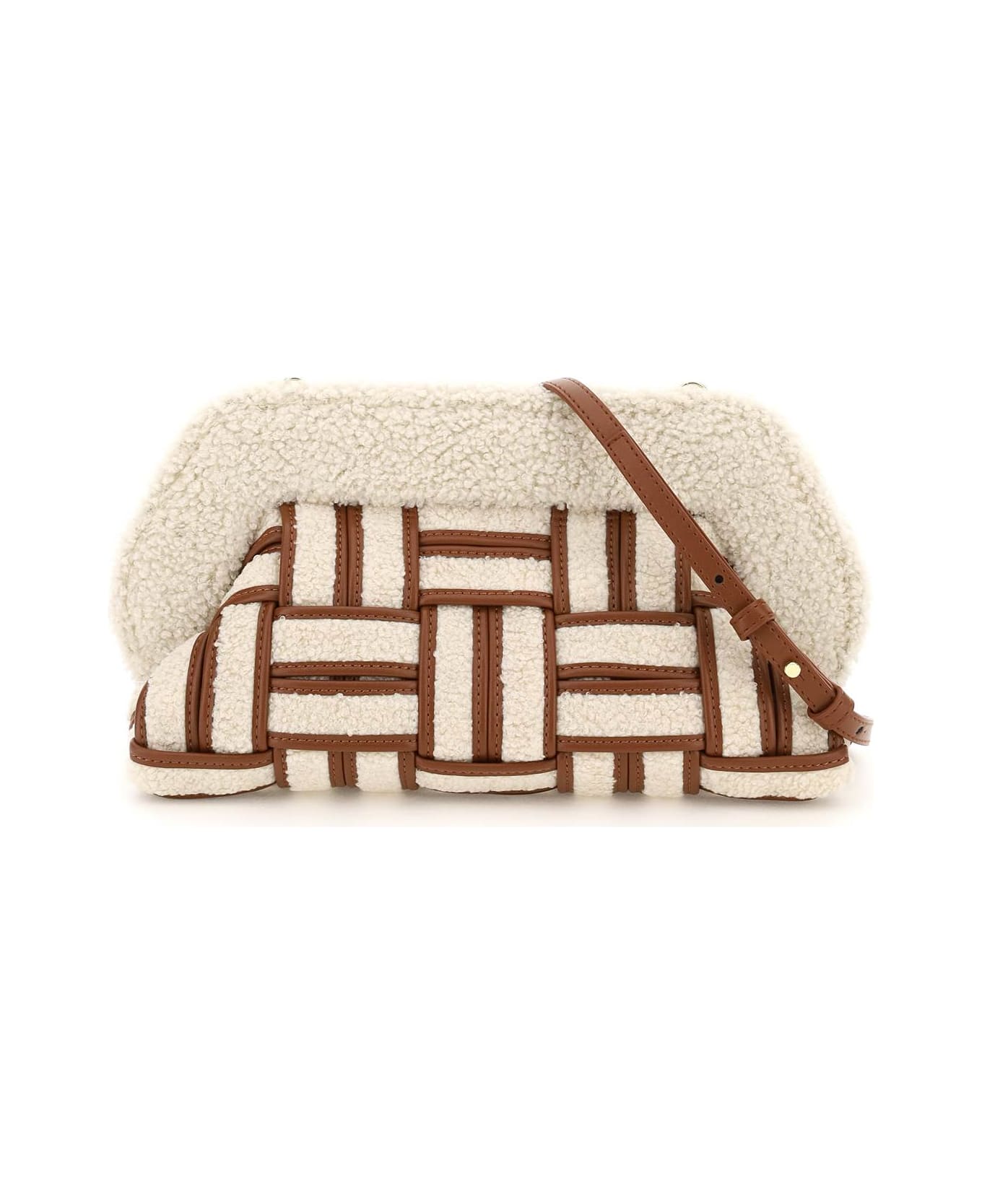 THEMOIRè Bios handbag made of faux-fur and sustainable vegan nappa leather making a weaved motif. Covered zipper frame and double magnetic closure, fabric interior and adjustable, detachable shoulder strap.