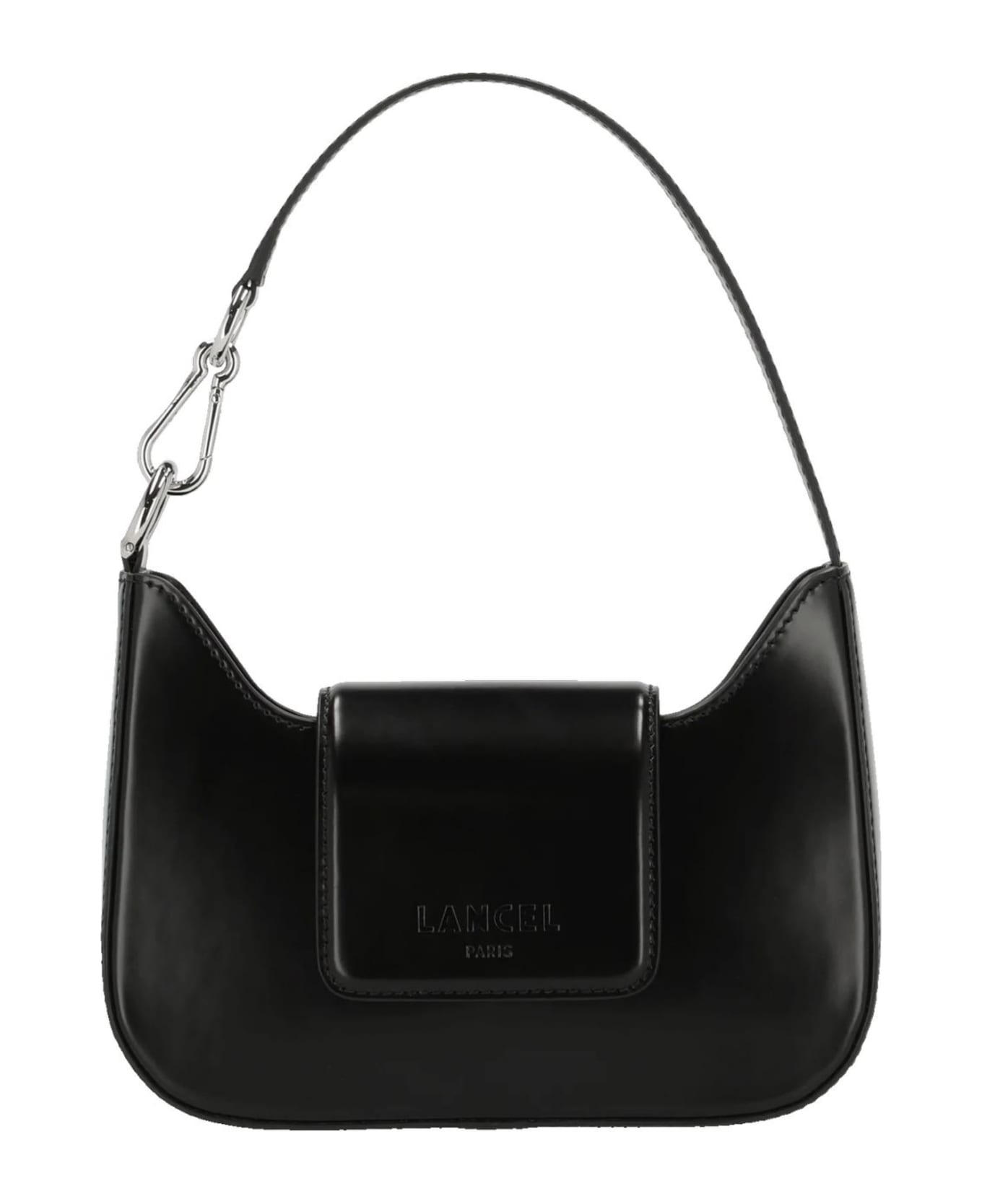 Black smooth and spazzolato cowhide leather baguette bag, textile lining, magnetic snap closure, one inside zipped pocket, non-removable and non-adjustable handle, 22,5 x 15,5 x 6 cm