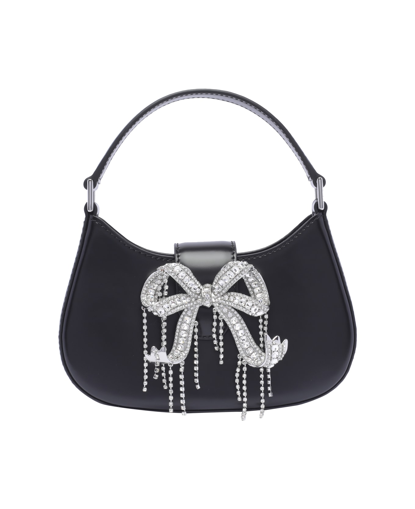 Self Portrait black leather crescent bag, magnetic closure, removable shoulder strap