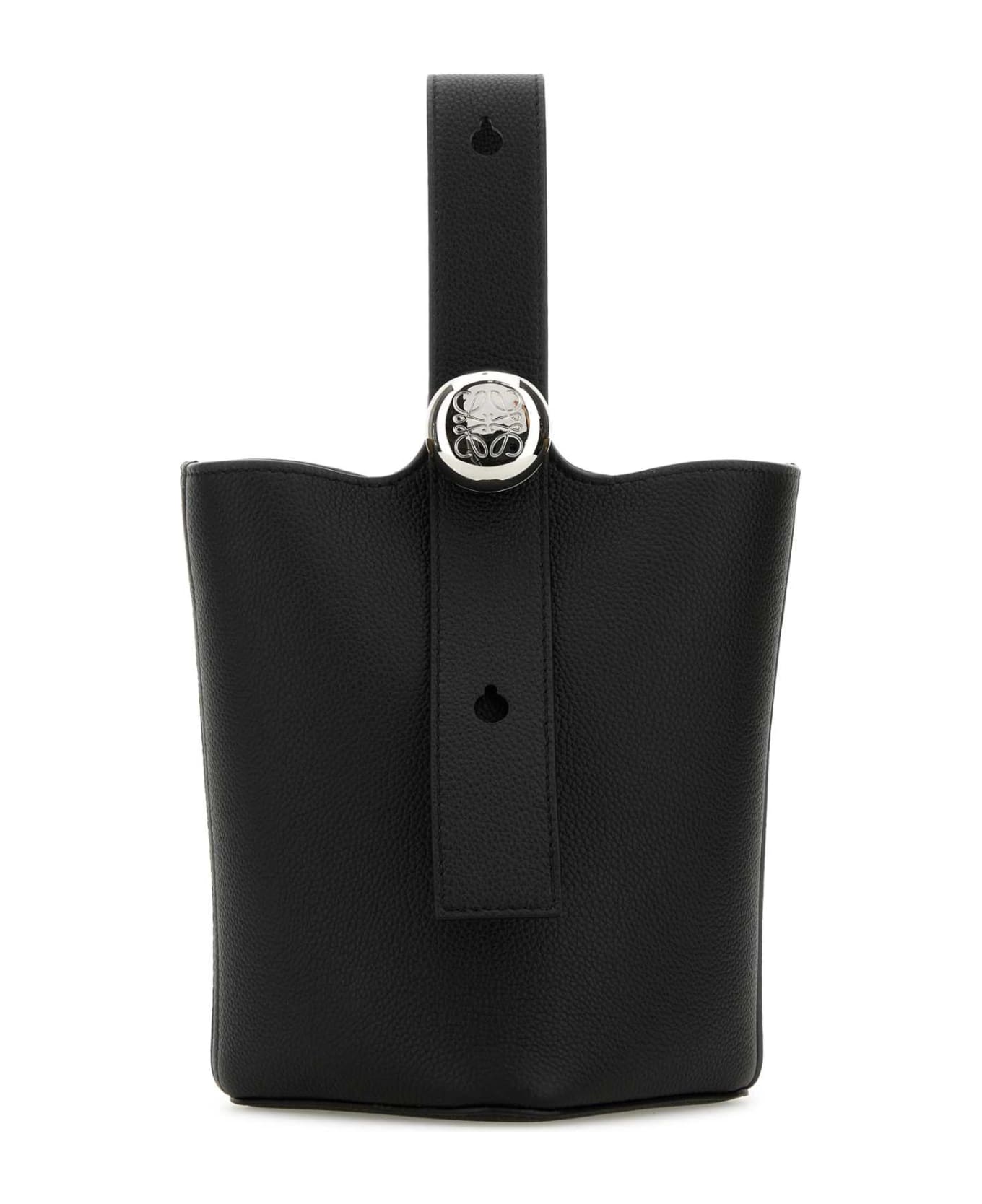Black Leather Mini Pebble Bucket Bag from Loewe