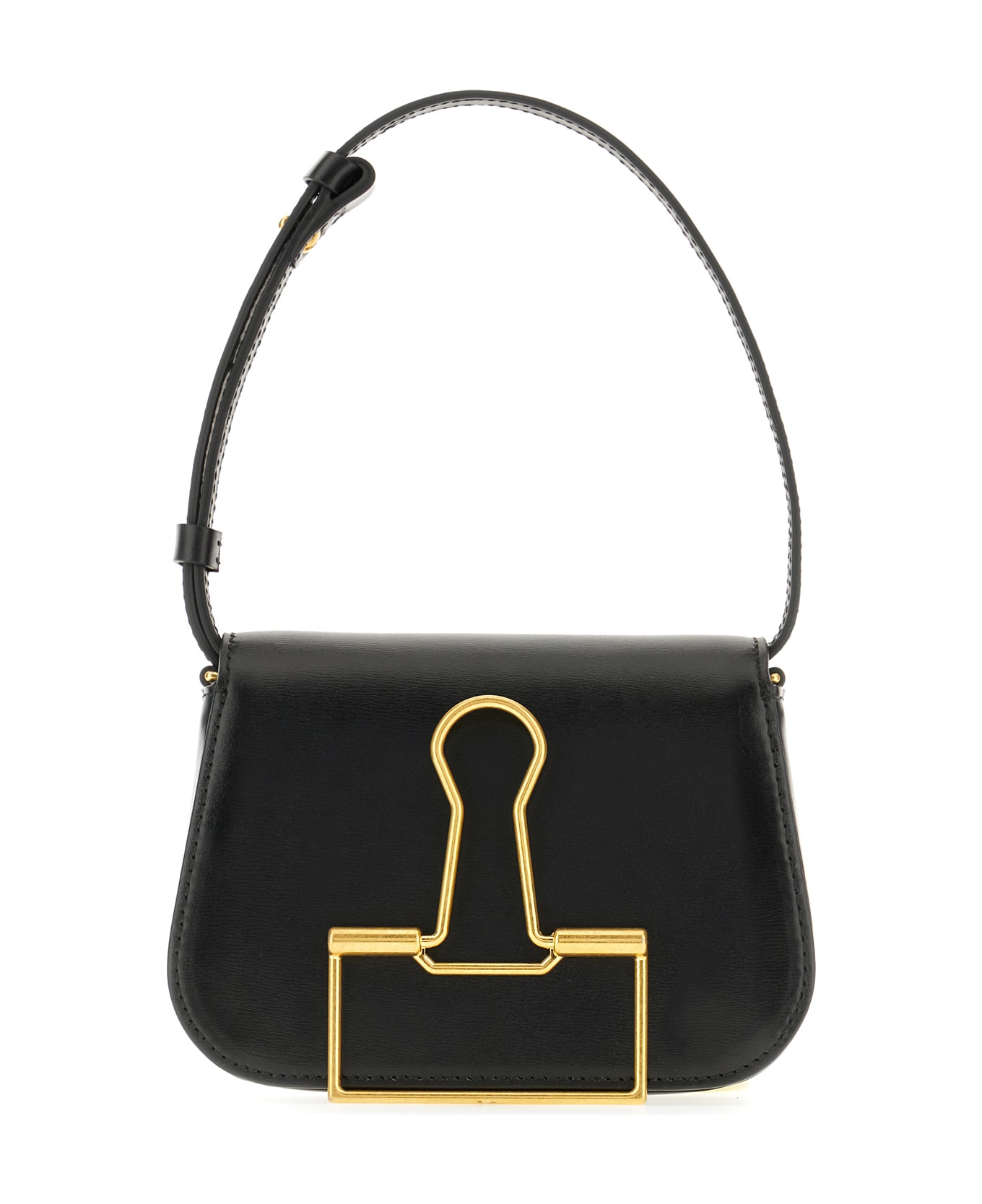 Handbag realized in smooth leather characterized by contrasting printed logo at the back enriched by metal detail at the front. -Adjustable detachable tonal leather flat handle -Detachable peculiar tonal leather shoulder strap -Magnetic buttons closure under the flap -Lined interior with a credit card slot