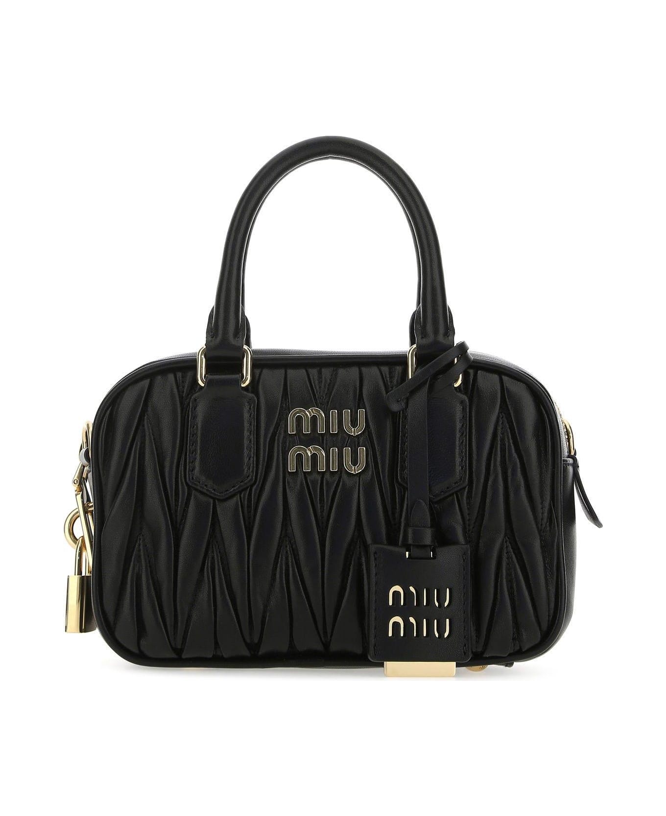 Handbag realized matelasse nappa leather enriched by metal lettering logo at the front and detachable tonal leather accessories. - Two tonal round handles- Adjustable detachable tonal leather shoulder strap - Zip and lock closure - Lined interior with two patch pockets - Protective metal feet Exterior: 100% Nappa leather Lining: 100% Fabric Finishing: Golden metal, Width: 20 cm, Height: 13,5 cm Depth: 6,5 cm Handle height: 10 cm Min shoulder strap length: 47,5 cm Max shoulder strap length: 52 cm, Composition: Exterior: 100% Nappa leather Lining: 100% FabricFinishing: Golden metal