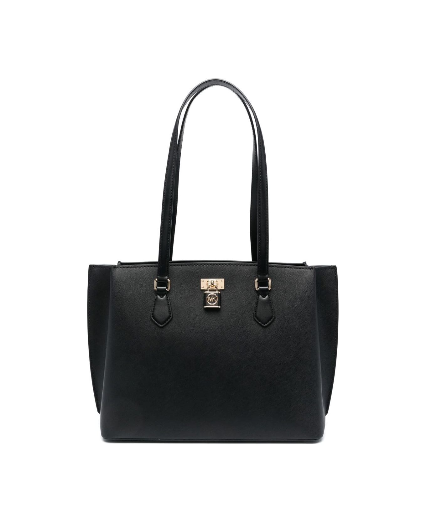 Tote bag Top zip fastening One main compartment Front logo padlock Gold-tone hardware Black Leather Dimensions: 36x26x15cm Handles 27cm
