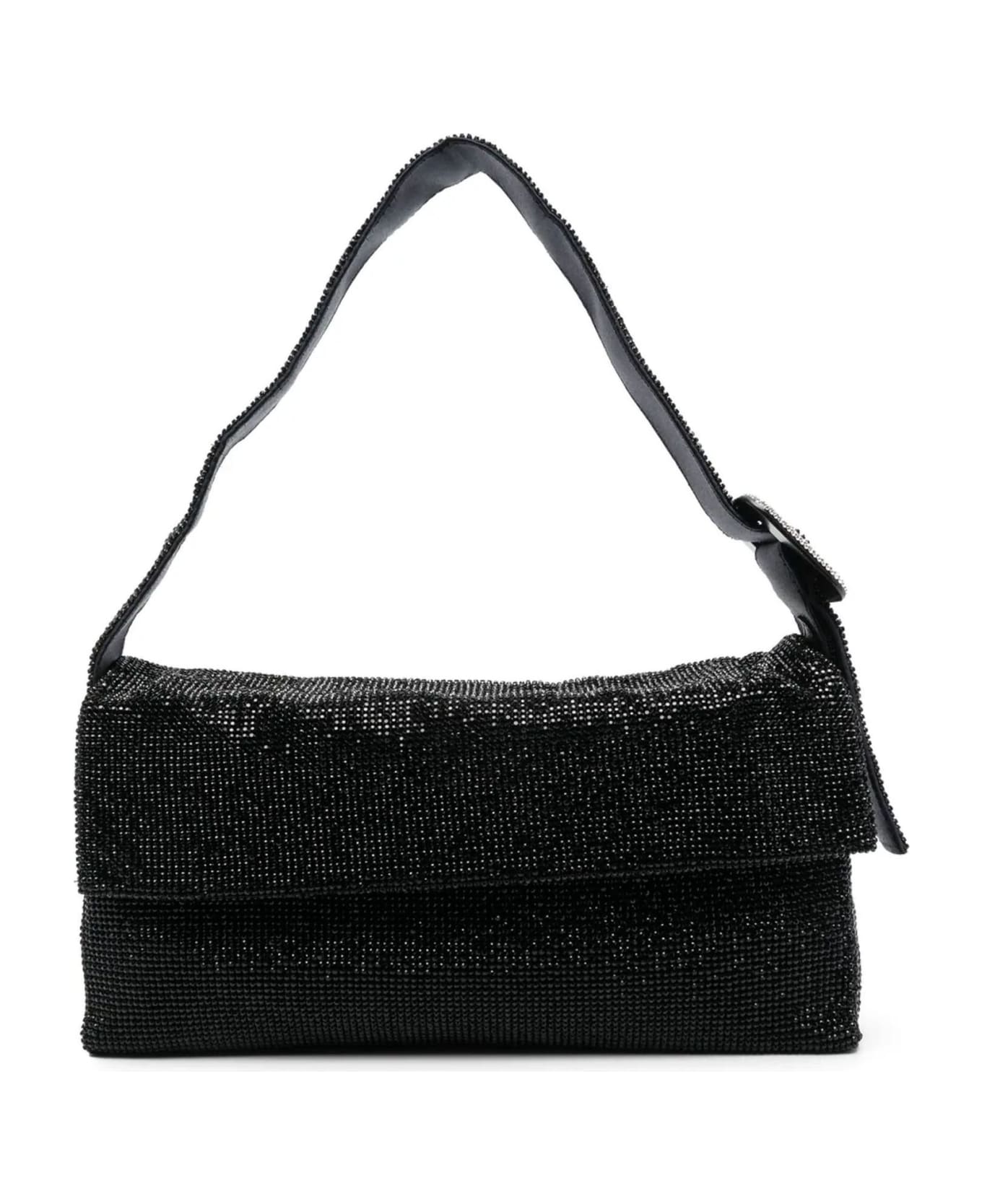 Black Vitty La Grande shoulder bag, rectangle shape, crystal embellishment, adjustable shoulder strap, foldover top, internal zip-fastening pocket, main compartment, H: 14cm X D: 4cm X W: 27cm Composition: Glass, 100% , Fabric, 100%