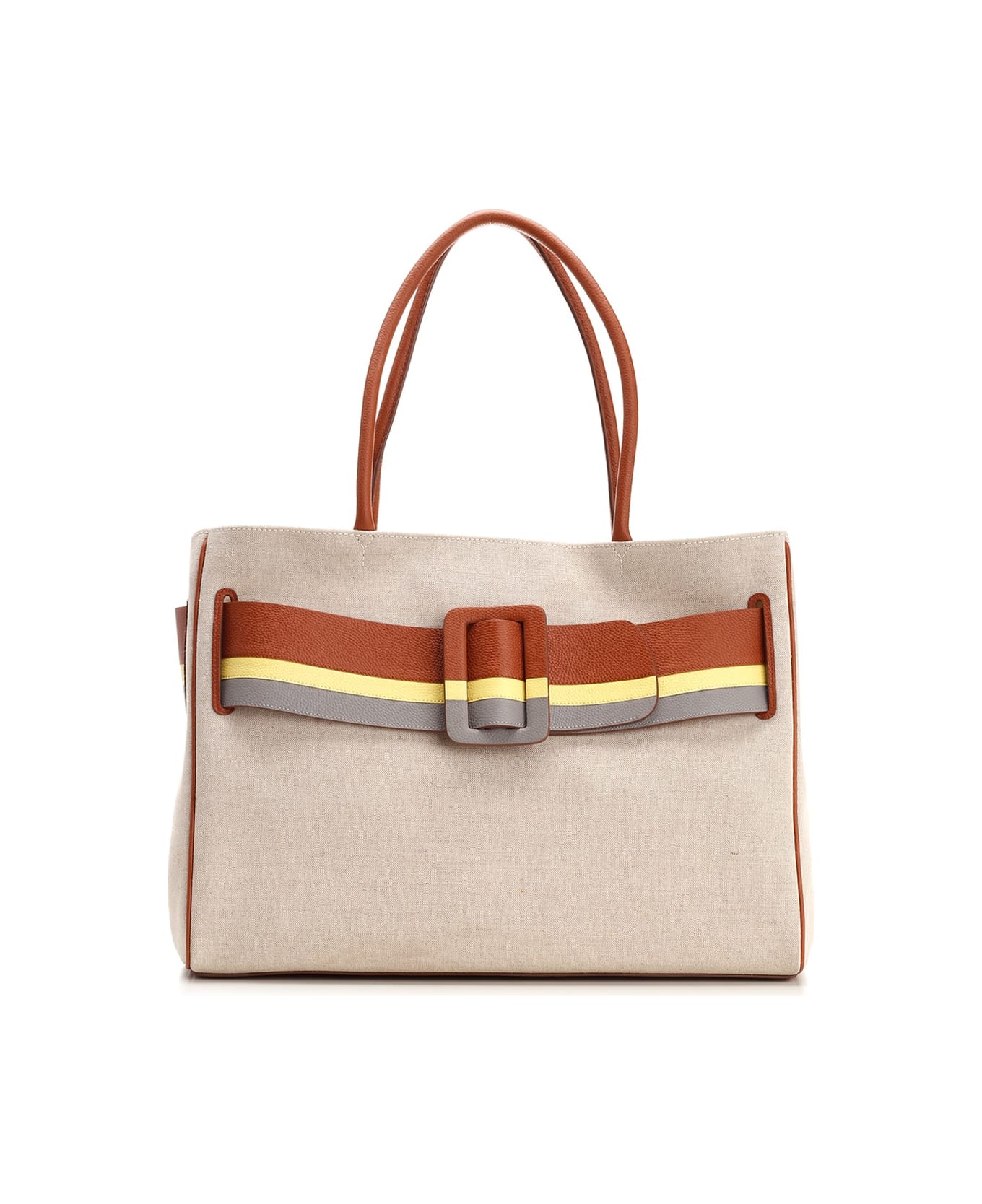 "Bobby" soft tote from Boyy in ecru canvas, with leather inserts and leather lining, eyelet closure, inside zip pocket, striped maxi strap with buckle. Composition: BODY - 50% CANVAS, 20% CALFSKIN LEATHER. LINING - 20% CANVAS. 10% CALFSKIN SUEDE.