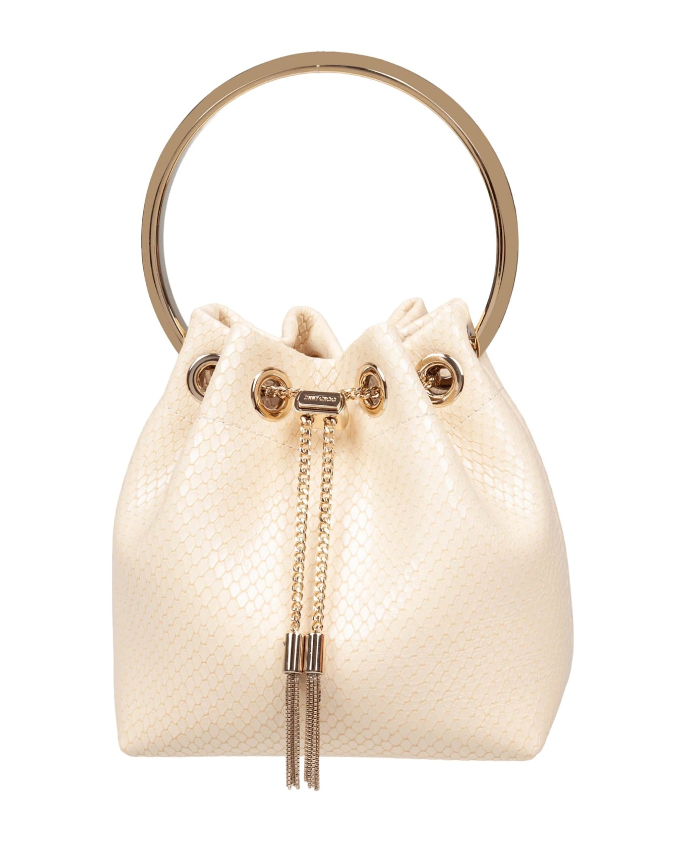 metal tassel closure with jimmy choo engraving
