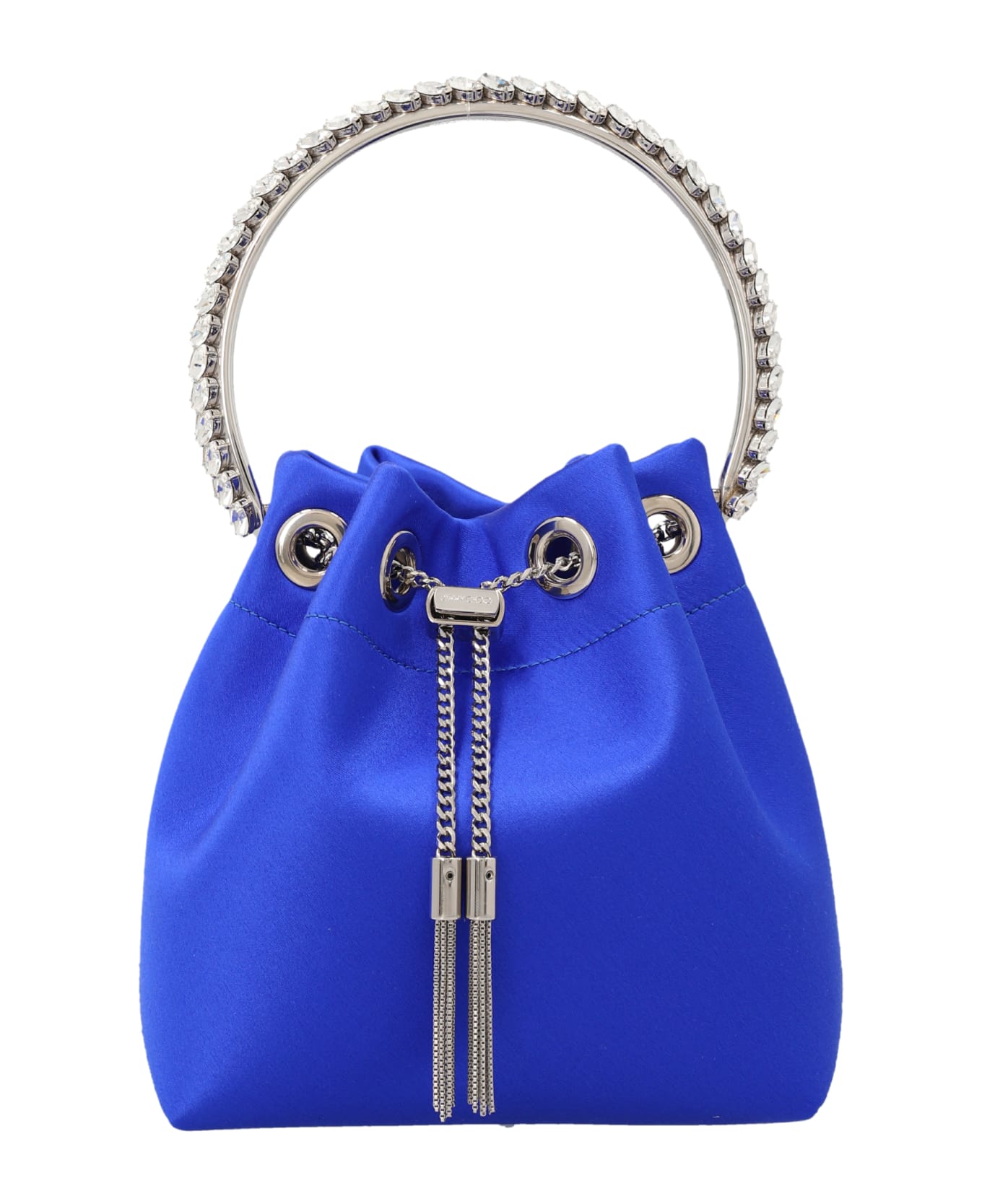 Bon Bon' satin bucket bag with silver color metal hardware and crystal handle. Composition: