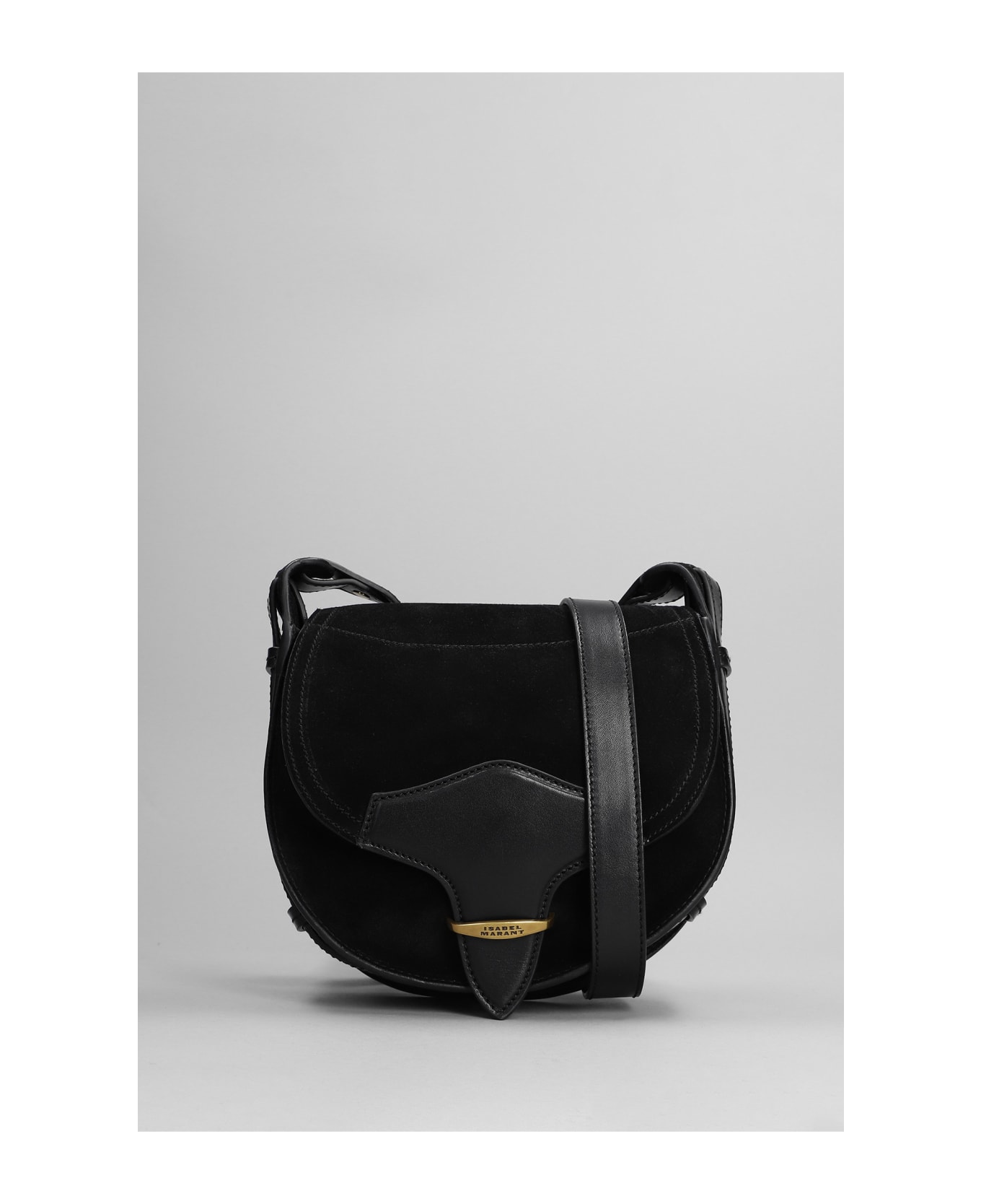 Botsy Shoulder bag in black suede and leather, shoulder strap, magnetic closure, leather detail, 100% suede, Made in Tunisia, Height 175 mm, Width 220 mm