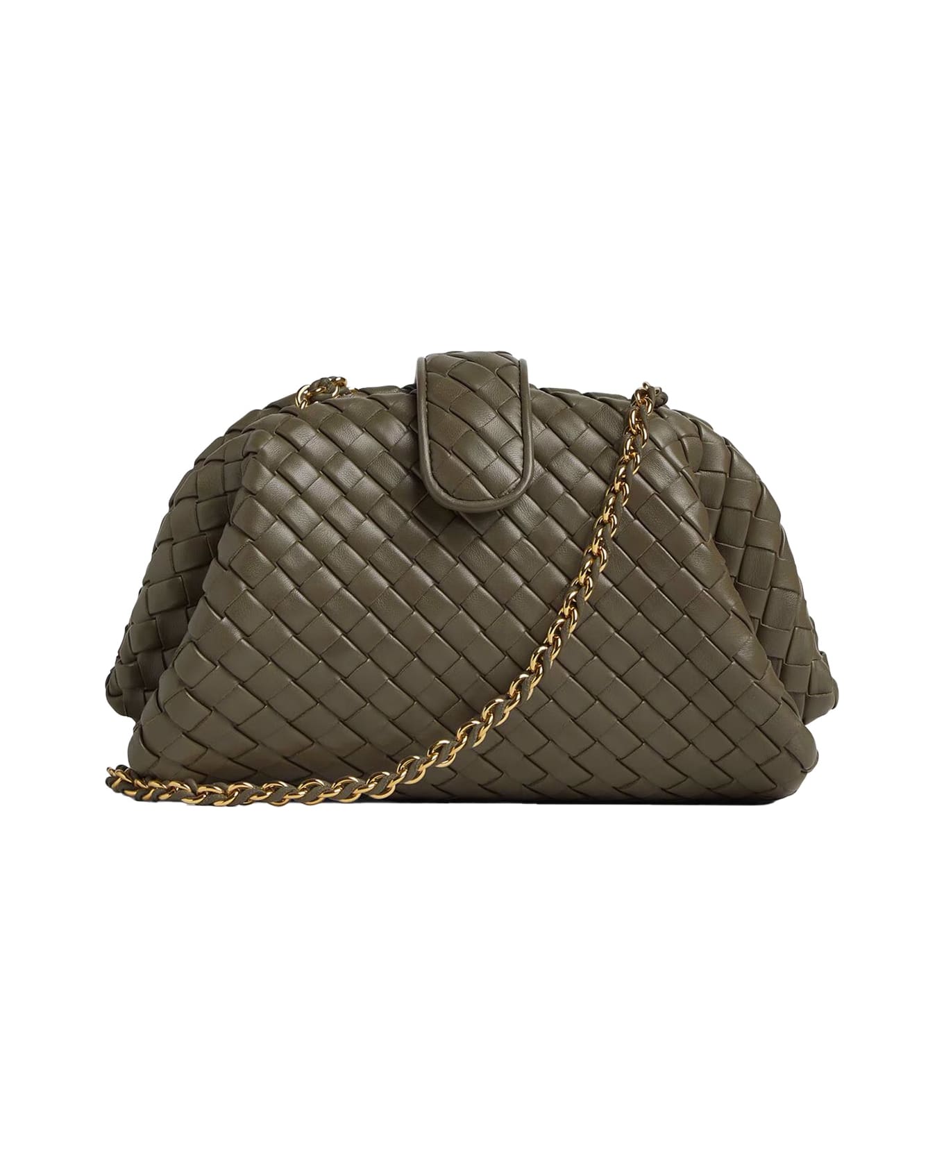 olive green woven leather clasp closure chain strap dome shape flap closure