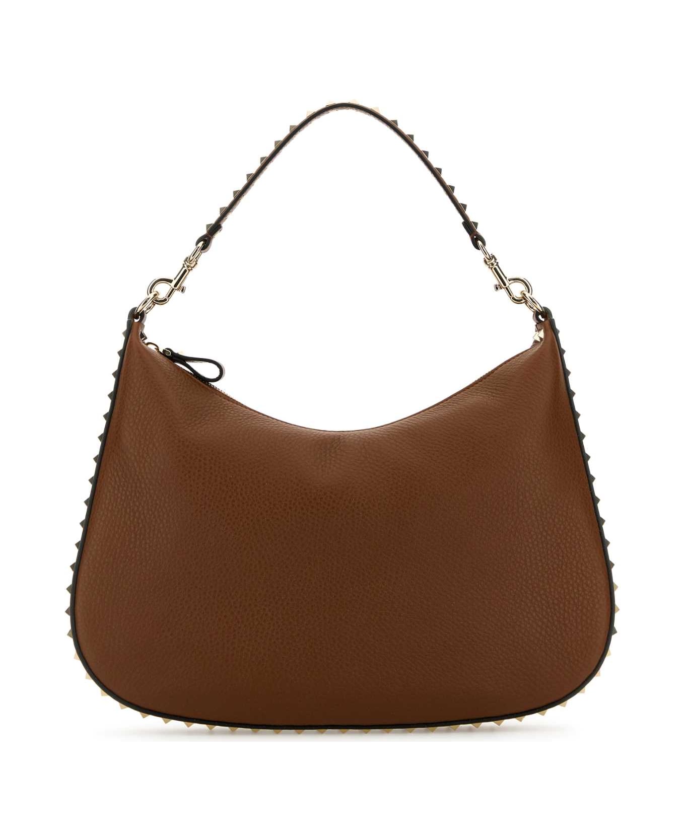 Brown Leather Hobo Rockstud Shoulder Bag from Valentino Garavani