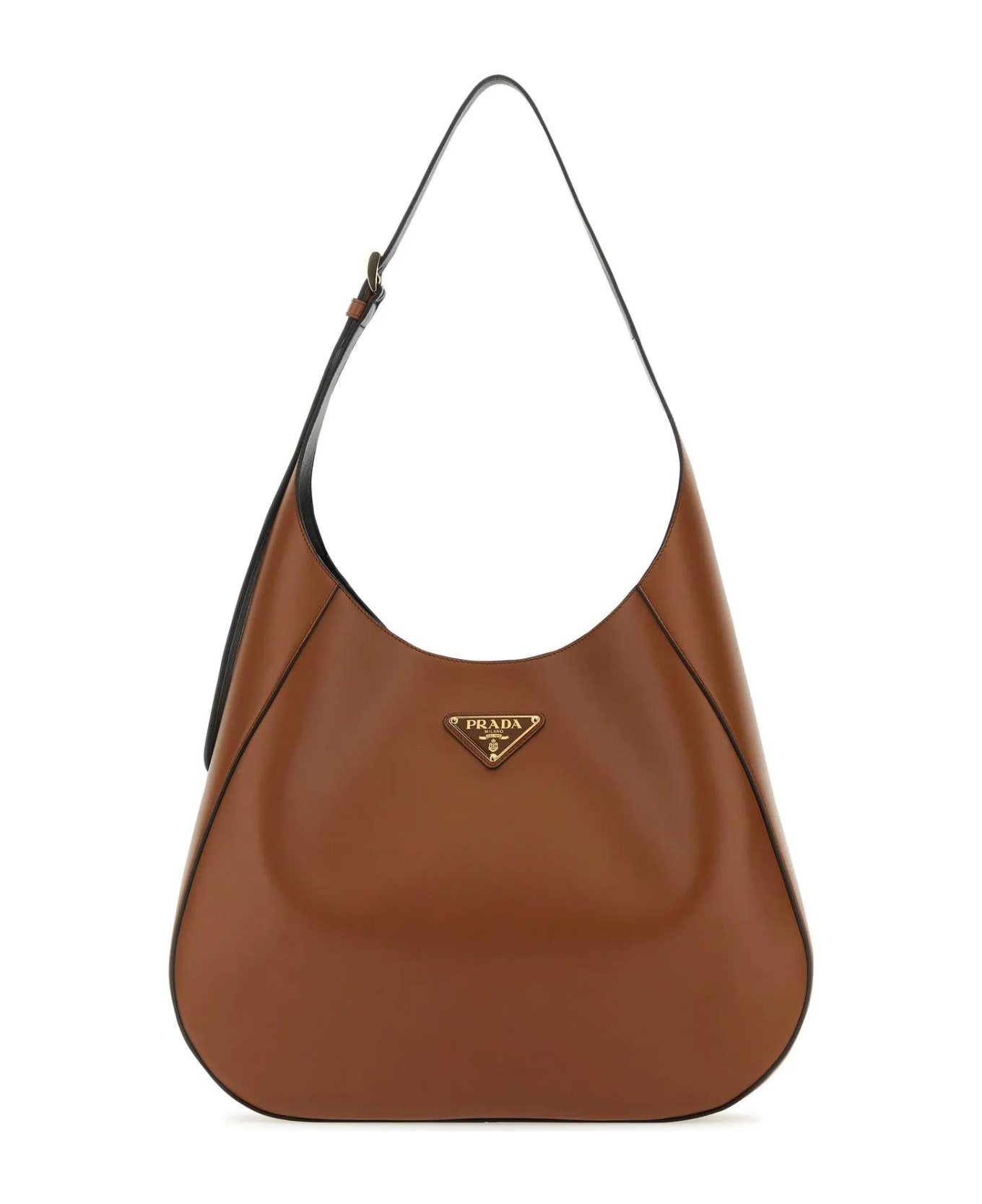 Shoulder bag realized in smooth calf leather enriched by iconic logoed triangle at the front. - Adjustable tonal leather flat handle - Magnetic button closure - Nappa leather interior Composition: Exterior: 100% Calf Lining: 100% Nappa leather Finishing: Golden metal