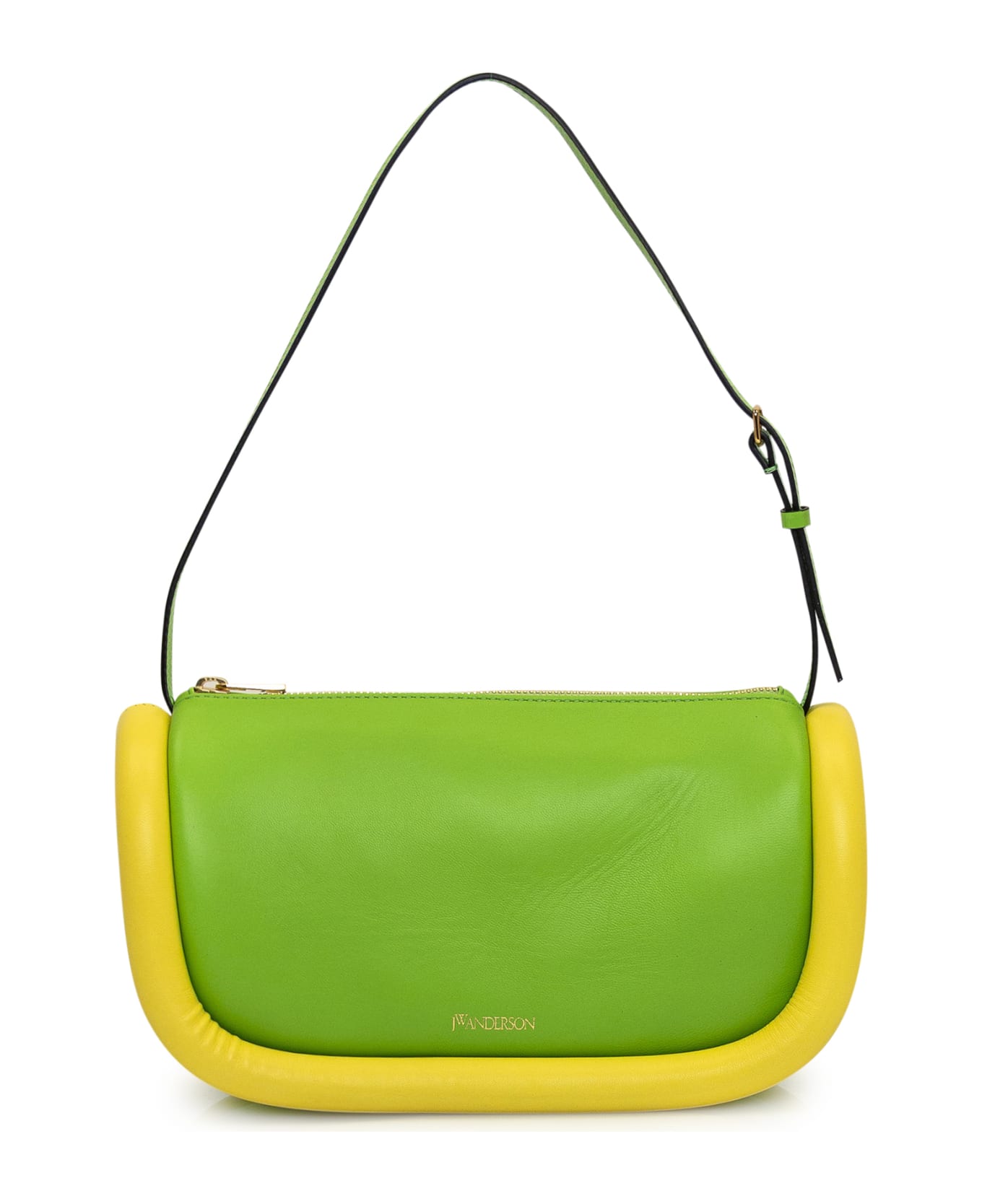 Green bag. Adjustable handle. Zip closure. Contrast padded edge. Logo on the front.