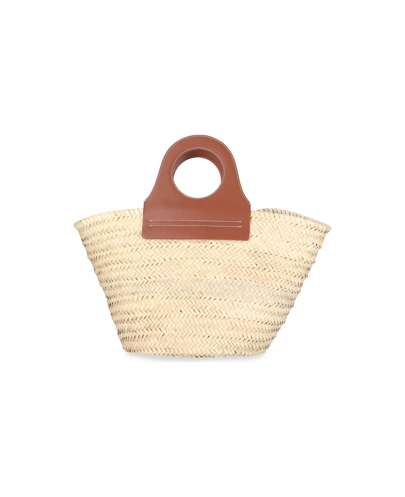 Hereu 'Caba' beige raffia tote bag with brown leather handles, inner strap closure, removable inner pouch.