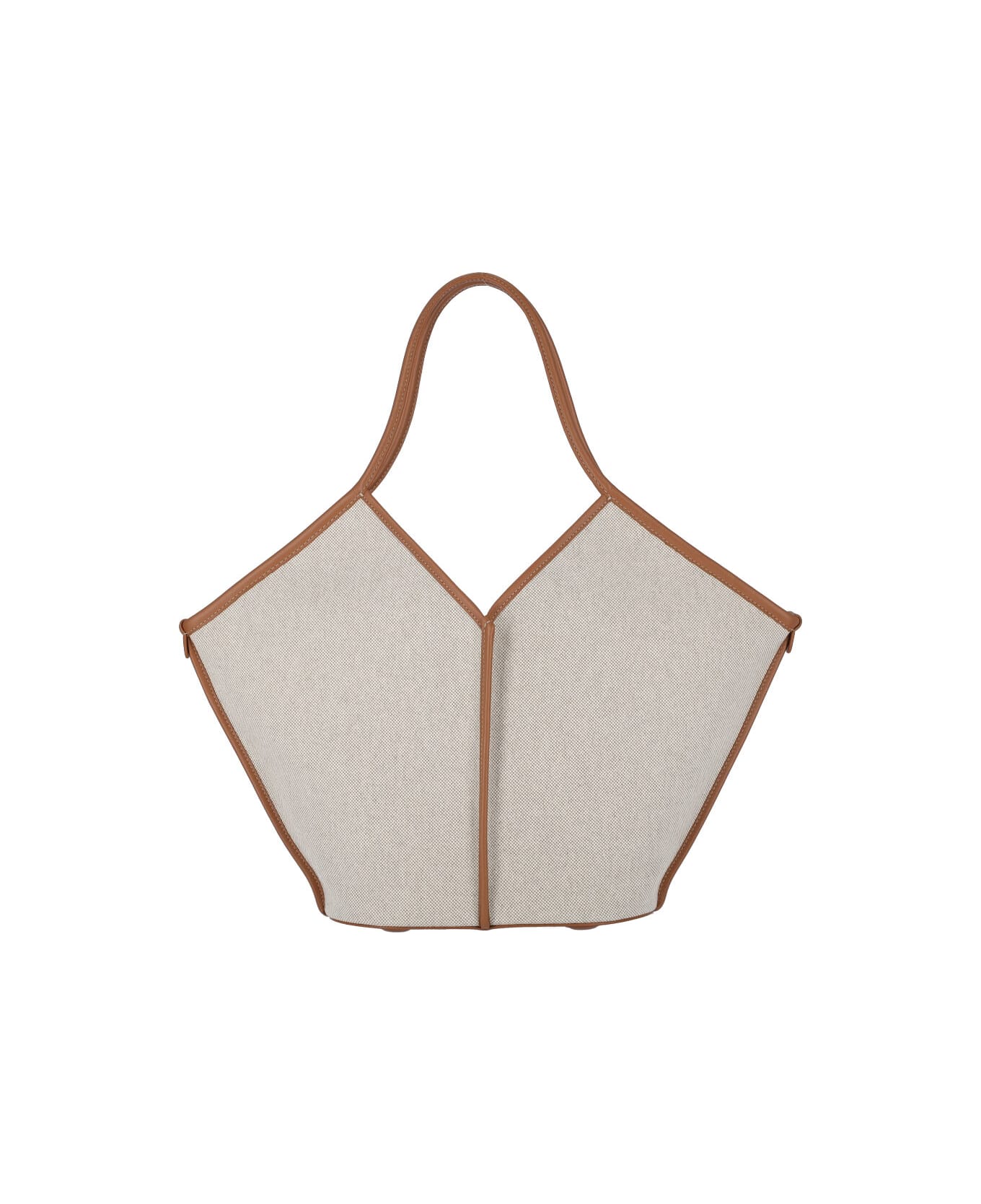 Hereu 'Calella' cream cotton tote bag with brown leather trim, two handles, removable inner zip pouch, main inner compartment.