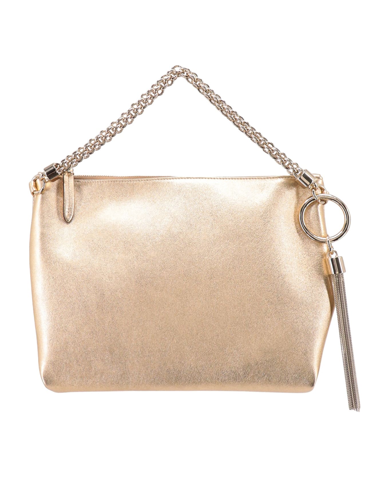 Gold leather handbag - Closure With Zip - Chain Handle - Metal Tassel Detail - Made In Italy - Leather