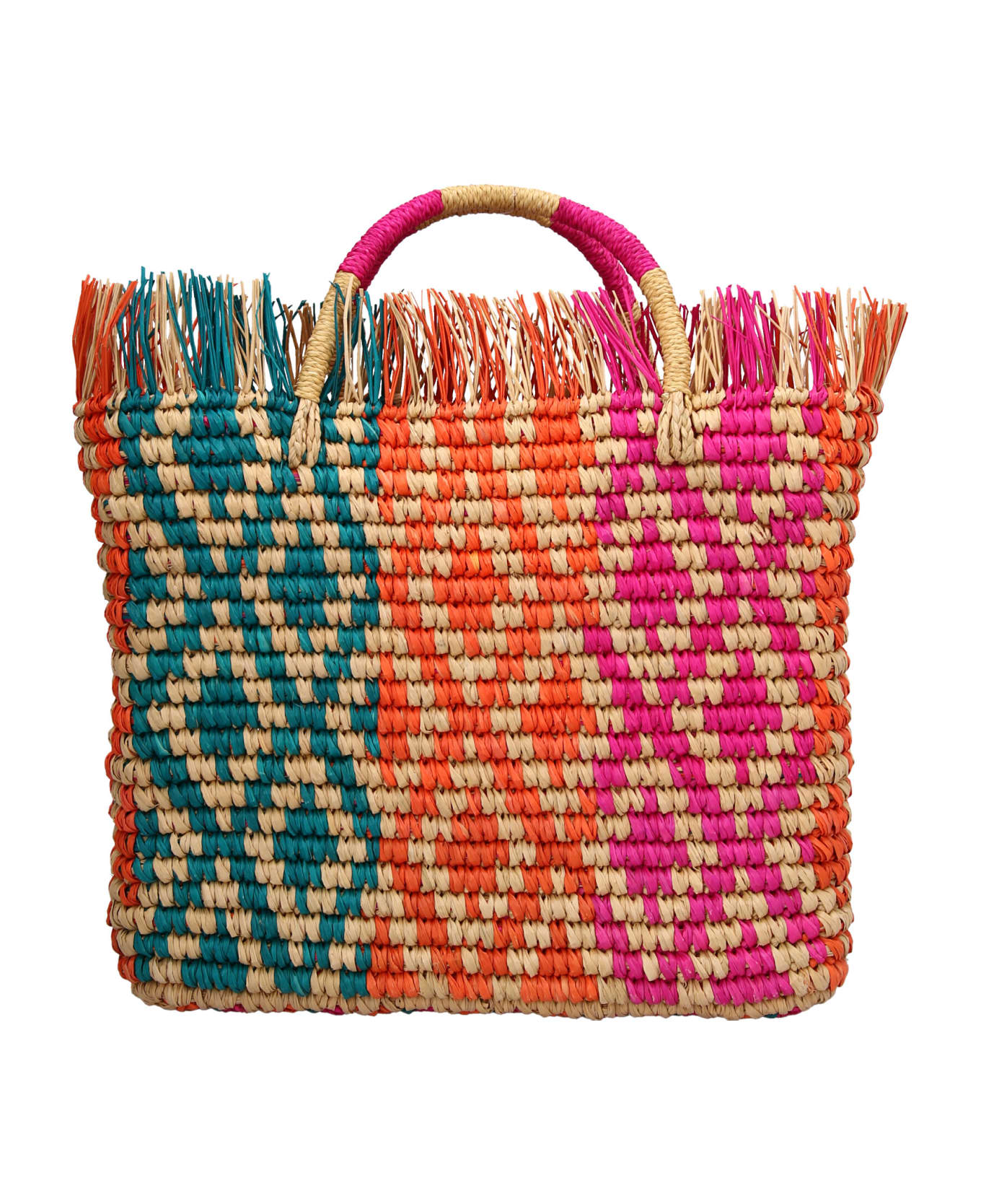 'Canasta Mexicana Maxi Frayed' multicolor straw handbag with fringed top, double handle. double handle.