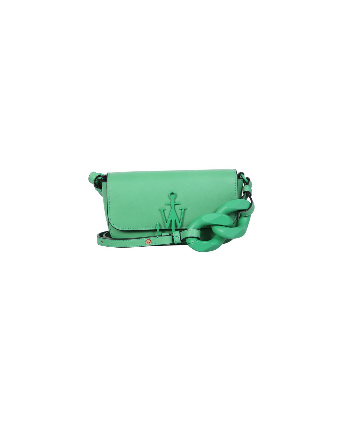 Foldover top. Magnetic fastening. Main compartment. Internal slip pocket. Logo anchor JWA to the front. Tone-on-tone logo. Adjustable shoulder strap. Chain detail shoulder strap. Gold tone hardware. Color: green