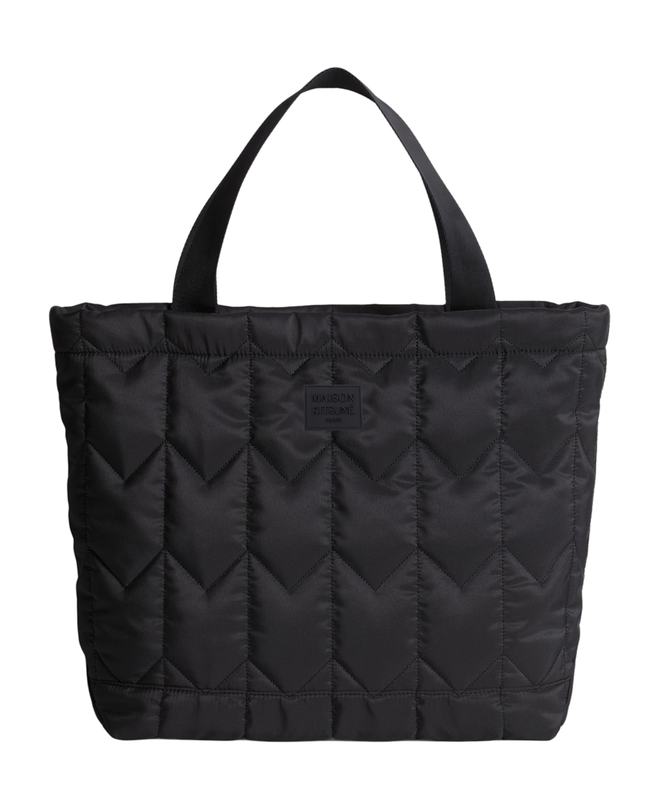 Chevron Quilted Large bag -Maison Kitsuné -Black color -Single interior compartment -Double handles -Zip closure -Front logo -Dimensions: Width 48. 5cm x Height 36cm x Depth 14cm