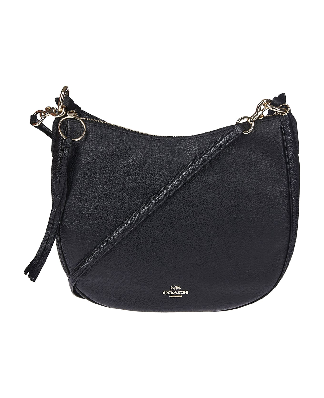 Sutton Hobo Bag from Coach: Black Sutton Hobo Bag with top handle, removable shoulder strap, front logo plaque, gold-tone hardware, rear zipped pocket, keyring tassel detail, internal zipped pocket, main internal compartment and top zip fastening