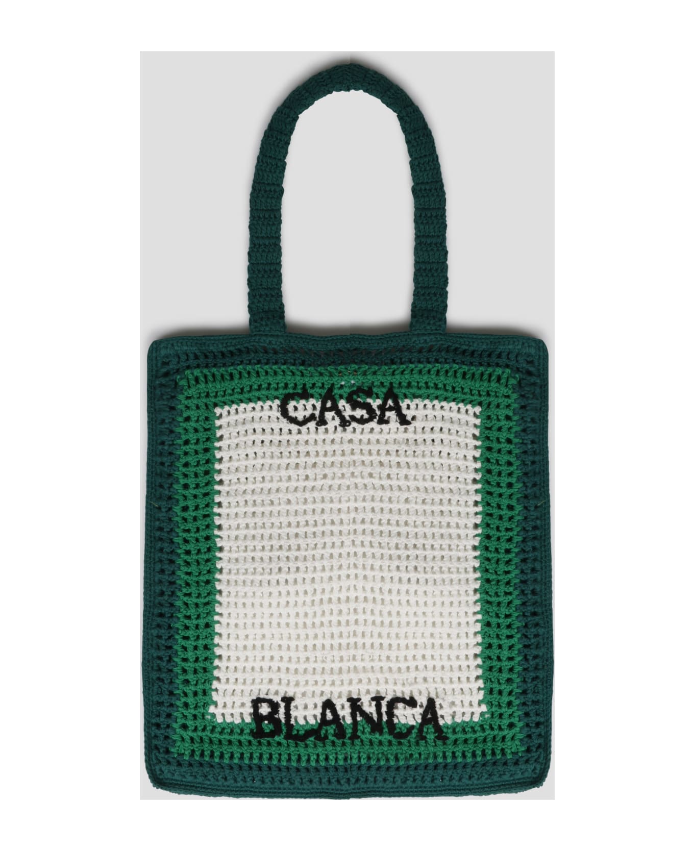 Casablanca cotton crochet tote bag, with contrasting logo embroidered on the front. - SS23